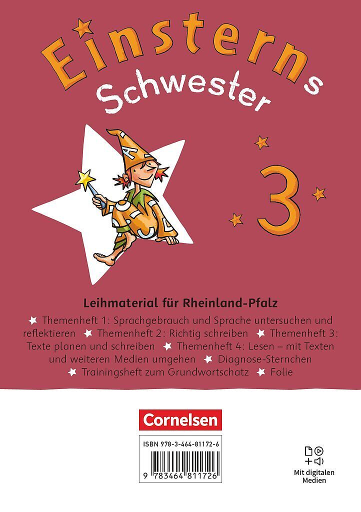 Selbstständiges Lernen im eigenen Tempo: Mit dem Themenheft-Paket von Einsterns Schwester decken Sie alle Kompetenzbereiche des Deutschunterrichts ab. Die Themenheften sind in kindgerechte Lernportionen unterteilt, die alle Grundschulkinder selbstständig bearbeiten können. Das motiviert Ihre Klasse und erleichtert Ihre Unterrichtsorganisation. Das Paket enthält: Themenheft 1: Sprachgebrauch und Sprache untersuchen und reflektierenThemenheft 2: Richtig schreibenThemenheft 3: Texte planen und schreibenThemenheft 4: Lesen mit Texten und weiteren Medien umgehenTrainingsheft zum GrundwortschatzDiagnose-Sternchen-Heft zur Lernstandermittlung Das zeichnet die Themenhefte aus: Sie ermöglichen Lernerfolg für alle: ein Lernschwerpunkt pro Seite, selbsterklärende Differenzierung mit klar gekennzeichneten Pflicht- und Wahlseiten.Für Motivation und Unterstützung im Lernprozess sorgt die zauberhafte Lola.Medienkompetenz vermitteln spezielle Medienkompetenzaufgaben, für Lehrkräfte gibt es eine Medienkompetenzsynopse dazu in jedem Themenheft.Mit der passgenauen Buchtaucher-App werden die Lerninhalte multimedial anschaulich vermittelt. Das bieten die weiteren Hefte: Das Trainingsheft zum Grundwortschatz bietet ein zusätzliches Rechtschreibtraining: Die Kinder üben intensiv Grundwortschatz-Wörter, Rechtsschreibstrategien und Arbeitstechniken. Das Diagnose-Sternchen bietet detaillierte Feedbackbögen zu jeder Lernportion. Kind, Lehrkraft und Eltern haben so den Lernstand jederzeit im Blick.