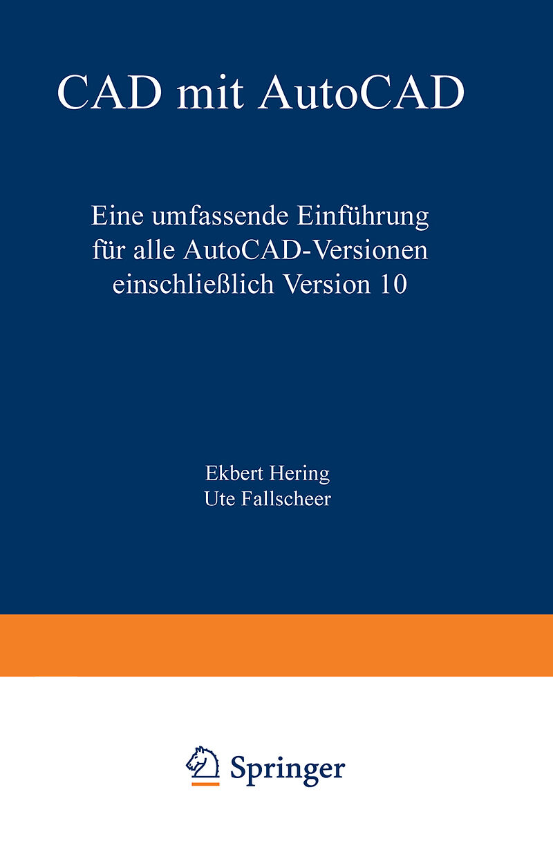 1 Einführung in CAD.- 1.1 Aufgaben und Bedeutung des CAD-Einsatzes.- 1.2 Typische Aufgaben in den einzelnen Branchen.- 2 Einführung in AutoCAD.- 2.1 Hardware-Voraussetzungen.- 2.2 Anpassung an MS-DOS.- 2.3 Das Software-Paket AutoCAD 10.- 2.4 Installation.- 2.5 Konfiguration der Hardware und Starten von AutoCAD.- 2.6 Vereinbarungen für Bezeichnungen und Markierungen.- 2.7 Tastaturbelegung.- 2.8 Eingabe der Befehle.- 2.9 Dateneingabe.- 2.10 Verändern des eingestellten Status des Computers.- 2.11 Einstellen der Periphergeräte auf eine ähnliche Darstellung von Objekten.- 2.12 Konfiguration des Digitalisiertabletts und Einstellen des Standardtablettmenüs.- 3 Linien und Texte am Beispiel eines Namensschildes.- 3.1 Wechseln in den Zeichnungs-Editor.- 3.2 Zeichnen des Rechteckes.- 3.3 Zeichnen des Textes.- 3.4 Unterstreichen des Namens.- 3.5 Änderung der Zeichnung.- 3.6 Sichern der Zeichnung.- 3.7 Plotten der Zeichnung.- 3.8 Erklärung der verwendeten Befehle.- 4 Anwendung der geometrischen Grundkonstruktionen.- 4.1 Konstruieren der Ellipsentangente von einem Punkt aus.- 4.2 Erklärung der verwendeten Befehle.- 4.3 Layertechnik.- 5 Bemaßung von Werkstücken.- 5.1 Zeichnen des Drehzapfens.- 5.2 Bemaßung des Drehzapfens.- 5.3 Erklärung der verwendeten Befehle.- 6 Arbeiten mit Blöcken und Schraffieren von Teilen.- 6.1 Zeichnen eines Balkendiagrammes mit Blöcken.- 6.2 Schraffieren.- 6.3 Blockbefehle.- 6.4 Zeichnen und Schraffieren eines Kreisdiagrammes.- 6.5 Verwendete Befehle.- 7 Darstellungen in der dritten Dimension (3D).- 7.1 Zeichnen des Kegels und der Raumfläche.- 7.2 Gleichzeitiges Darstellen verschiedener Ansichten.- 7.3 Zeichenbefehle für 3D.- 7.4 3D-Ansichten.- 7.5 Übungsbeispiel zur 3D-Konstruktion.- 7.6 Verwendete Befehle.- 8 Isometrisches Zeichnen.- 8.1Übungszeichnung.- 8.2 Befehle für die isometrische Darstellung:ISOEBENE, FANG und RASTER.- 8.3 AutoCAD mit Digitalisiertablett.- 8.4 Definition einer eigenen Menüdatei.- 9 Anwendung von Attributen (Stücklistenerstellung).- 9.1 Erstellen der Bauteile-Bibliothek mit der Funktion BLOCK.- 9.2 Festlegen der Attribute für die Bauteile.- 9.3 Anfertigen des Schaltplans.- 9.4 Erstellen einer Stückliste.- 9.5 Attributbefehle.- 9.6 Verwendete Befehle.- 10 Restliche Befehle in AutoCAD.- 10.1 Objekte zeichnen.- 10.2 Objekte wählen und verändern.- 10.3 Konstruktionshilfen.- 10.4 Verändern von Polylinien, Maschen und Blöcken.- 10.5 Operationen rückgängig machen.- 10.6 Abfragebefehle.- 10.7 Bildschirmanzeige.- 10.8 Stapelverarbeitung.- 10.9 Diademonstration.- 10.10 Plotten mit den Funktionen PLOT und PRPLOT.- 10.11 Zeichnungshilfen.- 10.12 Weitere Befehle.- 11 Programmieren mit AutoLISP.- 11.1 Die Programmiersprache AutoLISP.- 11.2 AutoLISP-Programm zum Zeichnen einer Schraube.- 12 Befehle mit Dialogfenster.- 12.1 DDRMODI (Zeichnungshilfen).- 12.2 DDOMODI (Objekterzeugung).- 12.3 DDLMODI (Layer modifizieren).- 12.4 EINFUEGE.- 12.5 DDATTE.- 12.6 DDBKS.- 13 AutoCAD-Menüs.- 13.1 Das AutoCAD-Hauptmenü.- 13.2 Das AutoCAD-Konfigurationsmenü.- 13.3 Betriebsparameter-Menü.- 13.4 Datei-Dienstprogramm.- 13.5 Abroll-Menüs.- 14 Übungsbeispiele.- 14.1 Übungsbeispiel zur Funktion SCHRAFF.- 14.2 Vorderansicht eines Rückschlagventils.- 14.3 Möblieren eines Raumes.- 15 Zusatzanwendungen für AutoCAD.- 15.1 Zeichnungsverwaltung.- 15.2 Normteile-Bibliothek.- 15.3 Variantenkonstruktion.- 15.4 Erzeugen des NC-Programms aus der Zeichnung.- Sachwortverzeichnis.