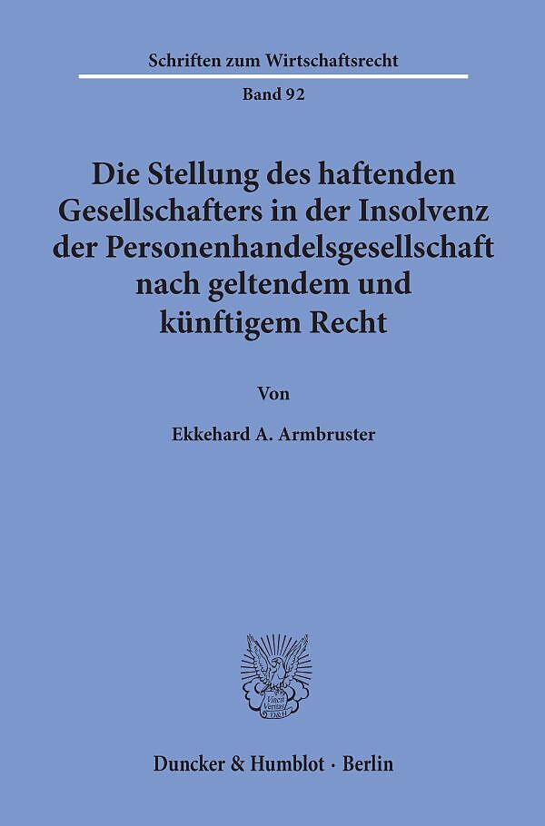 Die Stellung des haftenden Gesellschafters in der Insolvenz der Personenhandelsgesellschaft nach geltendem und künftigem Recht.