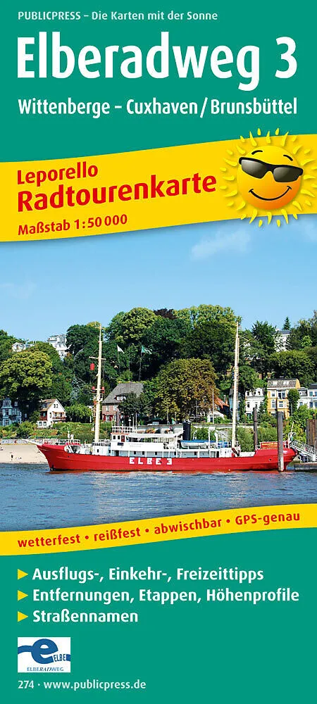 Die Radwanderkarte Elberadweg 3 stellt den dritten Teil des 860 km langen Elberadwegs vor: Er reicht von Wittenberge bis zur Mündung der Elbe in die Nordsee, also bis Cuxhaven. Eine Alternativroute führt von Wedel östlich der Elbe bis Brunsbüttel. Das Leporell...