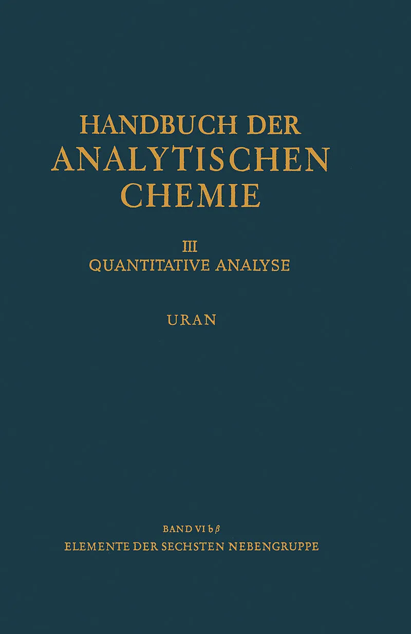 1 GraTimetrische Methoden - Einleitung.- 1.1 Bestimmung und Trennung mit anorganischen Reagenzien.- 1.2 Bestimmung und Trennung mit organischen Reagenzien.- 1.3 Mitfällungsmethoden.- 2 Titrimetrische Methoden.- 2.1 Einleitung.- 2.2 Reduktion des Urans(VI) zum Uran(IV).- 2.3 Titration des Urans nach vorangehender Reduktion zum Uran(IV).- 2.4 Titration von Uran(VI)-Lösungen.- 3 Photometrische Methoden.- 3.1 Colorimetrische und spektrophotometrische Methoden - Einleitung.- 3.2 Fluorometrische Methoden.- 3.3 Röntgen-Strahlen-Absorption.- 4 Polarographische, coulometrische und elektrolytische Methoden.- 4.1 Polarographische Methoden.- 4.2 Coulometrische Methoden.- 4.3 Elektrolytische Methoden.- 5 Chromatographische Methoden.- 5.1 Ionenaustausch.- 5.2 Verteilungschromatographie.- 6 Extraktionsmethoden.- 6.1 Einleitung.- 6.2 Extraktionen mit Äthern.- 6.3 Extraktionen mit Ketonen.- 6.4 Extraktionen mit Äthylaeetat.- 6.5 Extraktionen mit organischen Phosphorverbindungen.- 6.6 Extraktionen mit Chelatbildnern.- 6.7 Extraktionen mit flüssigen Aminen.- 7 Spektralanalytische Methoden.- 7.1 Normale spektralanalytische Methoden.- 7.2 Röntgenspektralanalytische Methoden.- 7.3 Emissionsspektrographische Methoden zur Isotopenanalyse.- 7.4 Massenspektrometrische Methoden.- 8 Radiochemische Methoden.- 8.1 Material-Behandlung zur Analyse.- 8.2 Bestimmung des Urans und seiner Isotopen durch Messung der ?-Aktivität.- 8.3 Bestimmung durch Messung von ?-Aktivitäten.- 8.4 Bestimmung durch Messung von ?-Aktivitäten.- 8.5 Bestimmung in Gesteinen und anderen Materialien durch kombinierte (?, ?, ?) -Strahlungsmessung.- 8.6 Bestimmung durch Neutronenaktivierungsanalyse.- 8.7 Strahlungs-Absorptiometrie.- 8.8 Autoradiographie.- 9 Analyse von bestrahlten Kernbrennstoff-Elementen.- 9.1Zerstörungsfreie Untersuchungen.- 9.2 Probenahme bei Kernbrennstoff-Elementen auf Uran-Basis.- 9.3 Auflösung bestrahlter Brennstoff-Proben.- 9.4 Bestimmung des Urans in bestrahlten Brennstoff-Elementen.- 9.5 Massenspektrometrische Analyse des Urans in Lösungen bestrahlter Brennstoff-Elemente.- Verzeichnis der Zeitschriften und ihrer Abkürzungen.