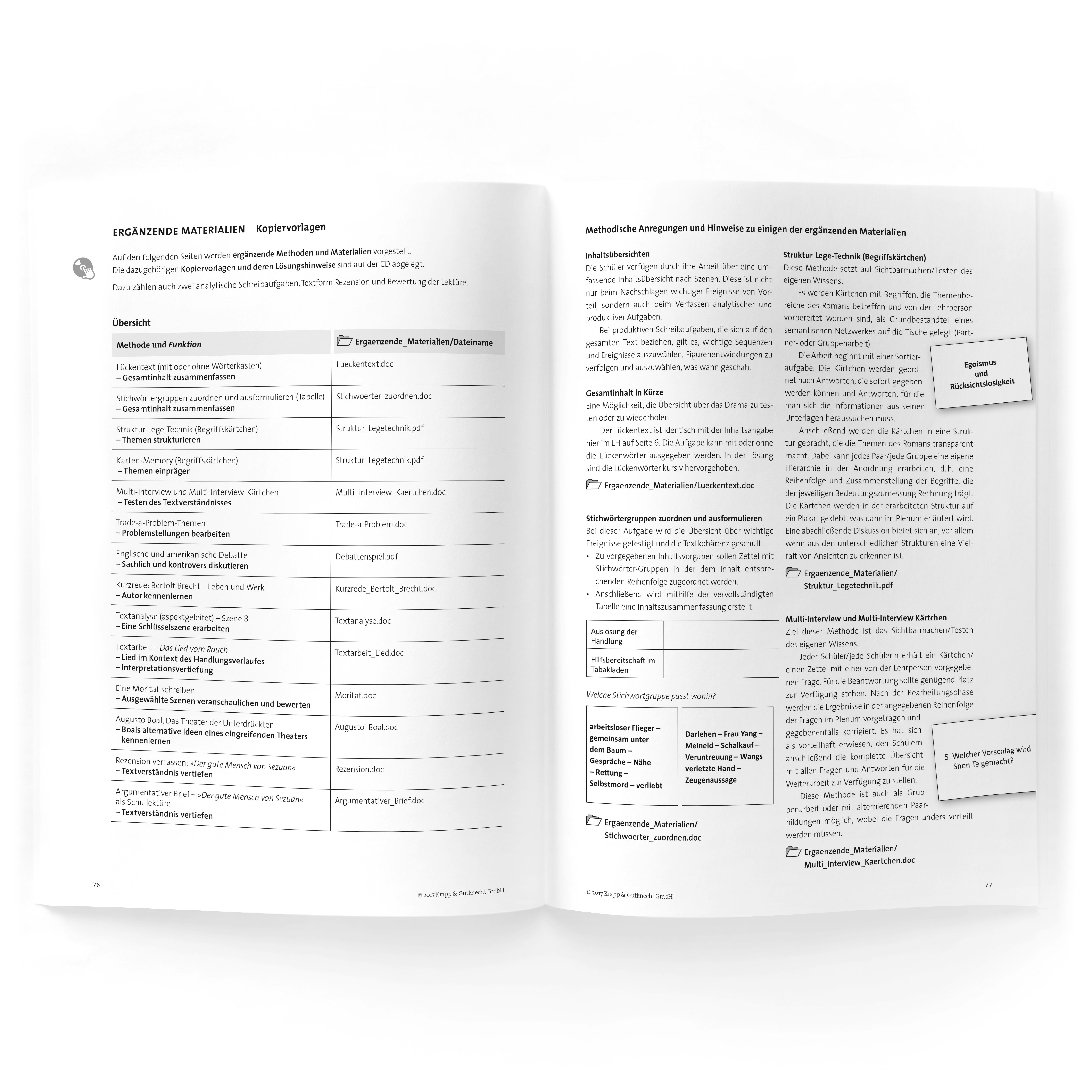 Unser Lehrerheft zum Schülerarbeitsheft zu Der gute Mensch von Sezuan von Bertolt Brecht enthält nicht nur die Lösungen der Aufgaben, sondern unterstützt bei der Planung eines abwechslungsreichen Deutschunterrichts, der Spaß an der Lektüre weckt und die Lesem...