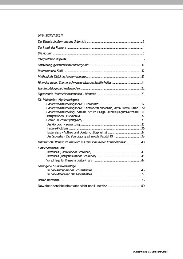 Unser Lehrerheft zum Schülerarbeitsheft zu Der Richter und sein Henker von Friedrich Dürrenmatt enthält nicht nur die Lösungen der Aufgaben, sondern unterstützt bei der Planung eines abwechslungsreichen Deutschunterrichts, der Spaß an der Lektüre weckt und di...