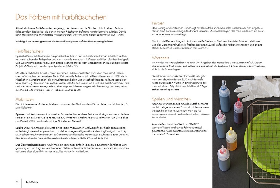 Batik im Trend Lange bekannt, absolut im Trend und auch auf den Laufstegen wieder zu sehen: Batik! In diesem Buch sind Schritt für Schritt einfache Techniken erklärt, mit denen die eigene Kleidung sowie Home Accessoires ein originelles, farbenfrohes Makeover e...