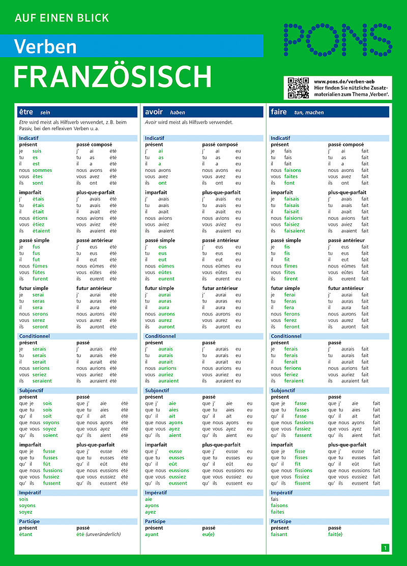 Die "Verben auf einen Blick" eignen sich für Schüler, Studenten und Sprachkursteilnehmer. Sie erhalten hier kompaktes Wissen - immer griffbereit. Die Blätter eignen sich fürs schnelle Nachschlagen und bieten eine optimale Übersicht. Sie sind strapazi...