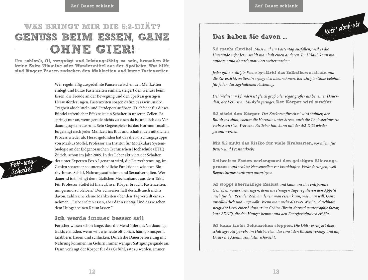 Das neue Erfolgs-Abnehmprogramm: klinisch erprobt, alltagstauglich und äußerst gesund. Hinter der 5:2-Diät steckt ein einfaches Konzept: An zwei Tagen pro Woche wird Diät gehalten, nur 500 Kalorien sind erlaubt. Den Rest der Zeit darf man essen, was man will. ...