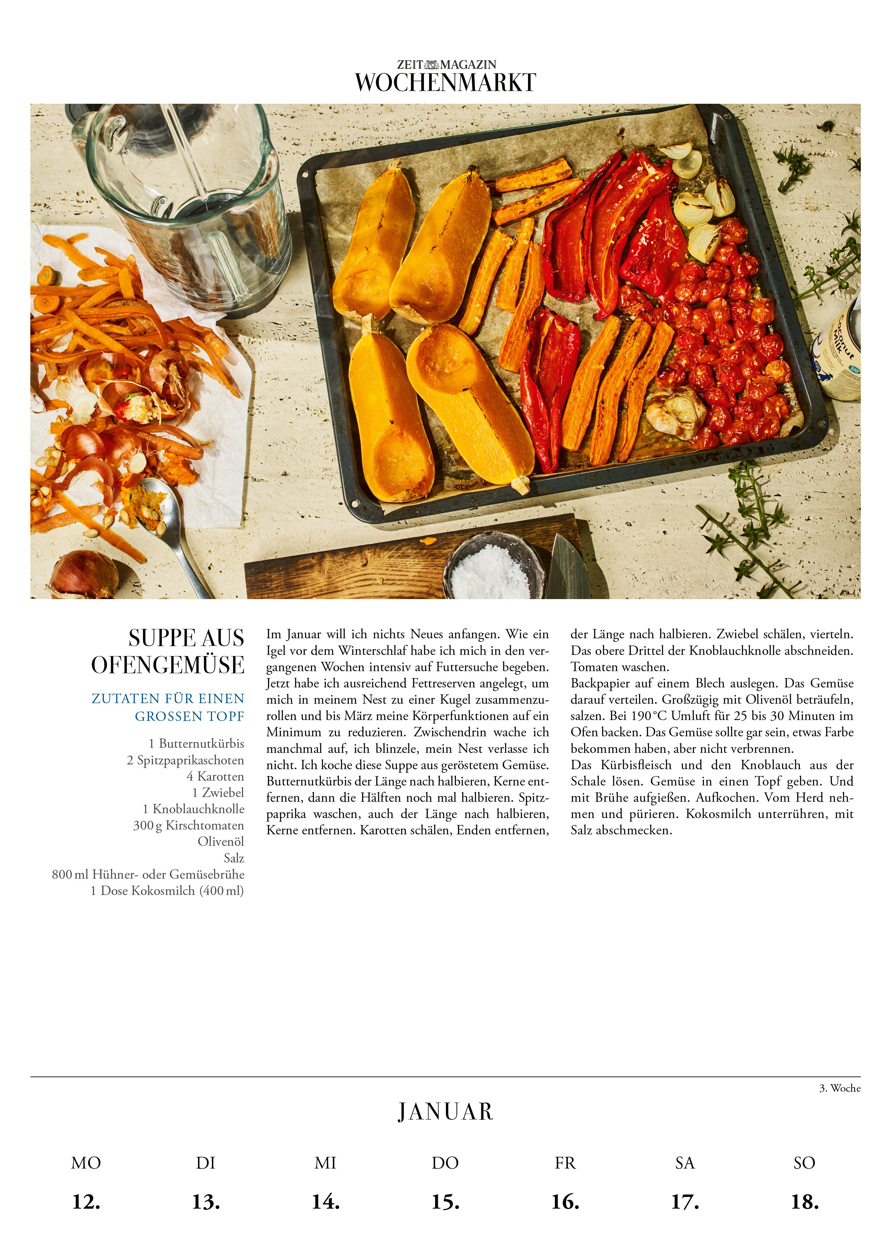 Elisabeth Raether präsentiert in ihrer »Wochenmarkt«-Kolumne im »ZEITmagazin« jede Woche kreative Rezepte, in denen sie frische, saisonale Zutaten vom Markt auf originelle Weise zubereitet. Mit 53 herzhaften und süßen Rezepten ist der offizielle Kalender für a...