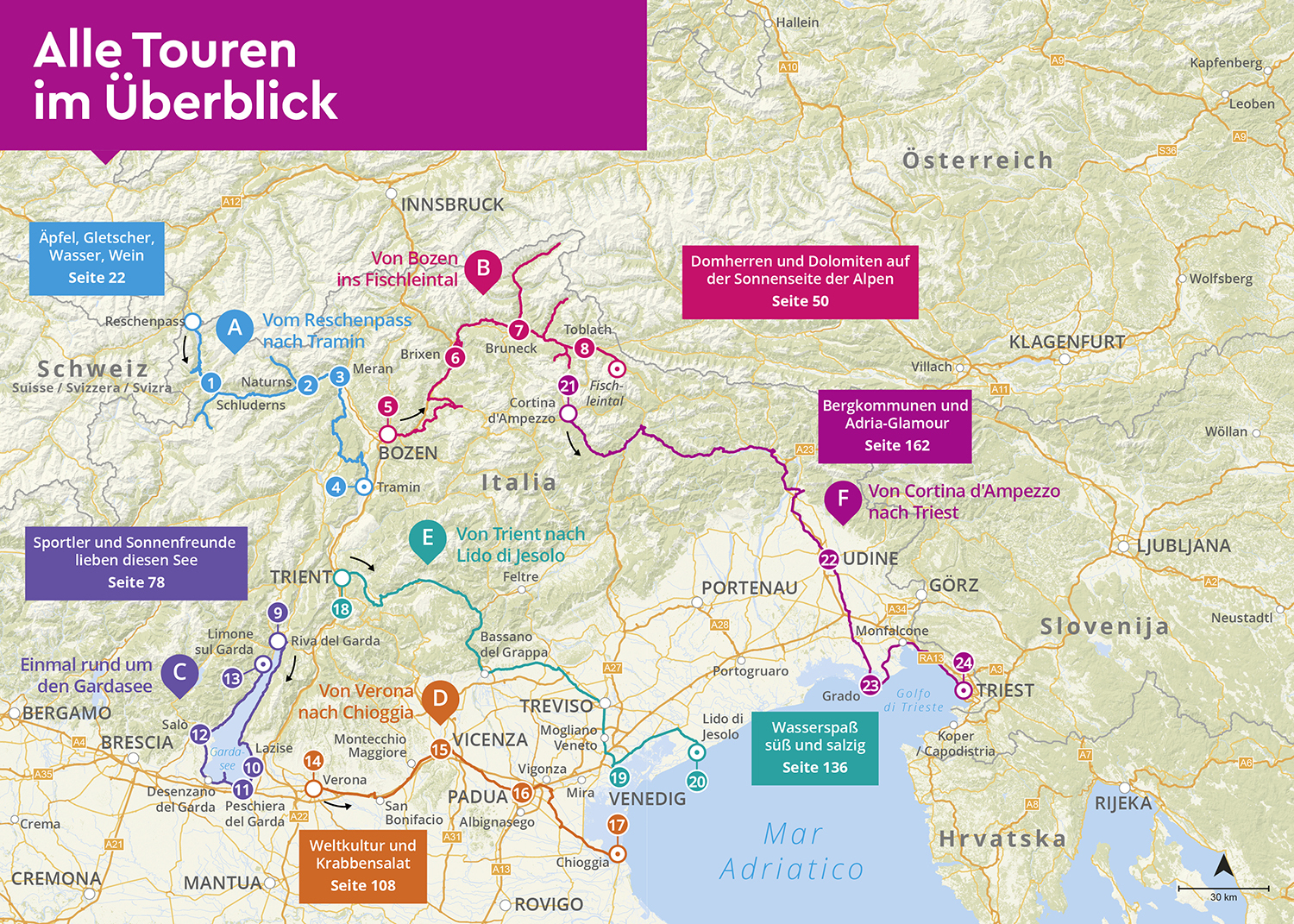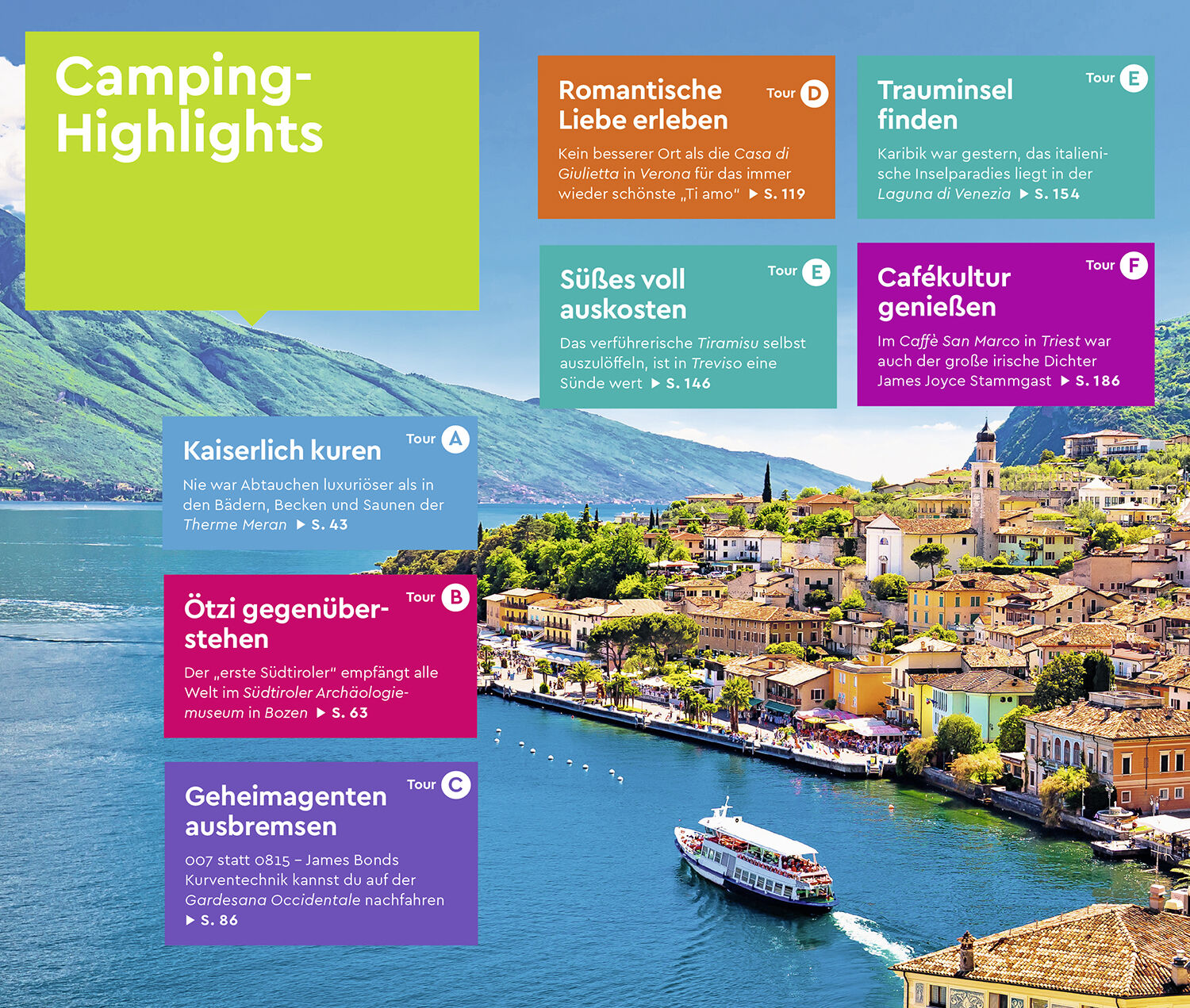 In den Urlaub von 0 auf 100? Dann ab ins Wohnmobil und raus in die Welt m it dem MARCO POLO Camper Guide Südtirol, Gardasee & Venetien Einfachste Routenplanung: 6 Touren zu den Highlights und weniger bekannten Stopps für dein individuelles Abenteuer Berge...