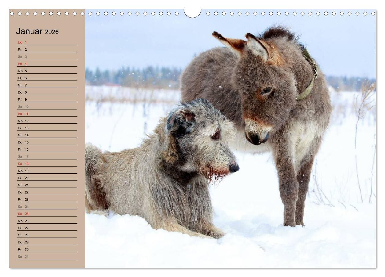 Das Esel-Paradies - Hunde und andere Feunde (Wandkalender 2026 DIN A3 quer), CALVENDO Monatskalender