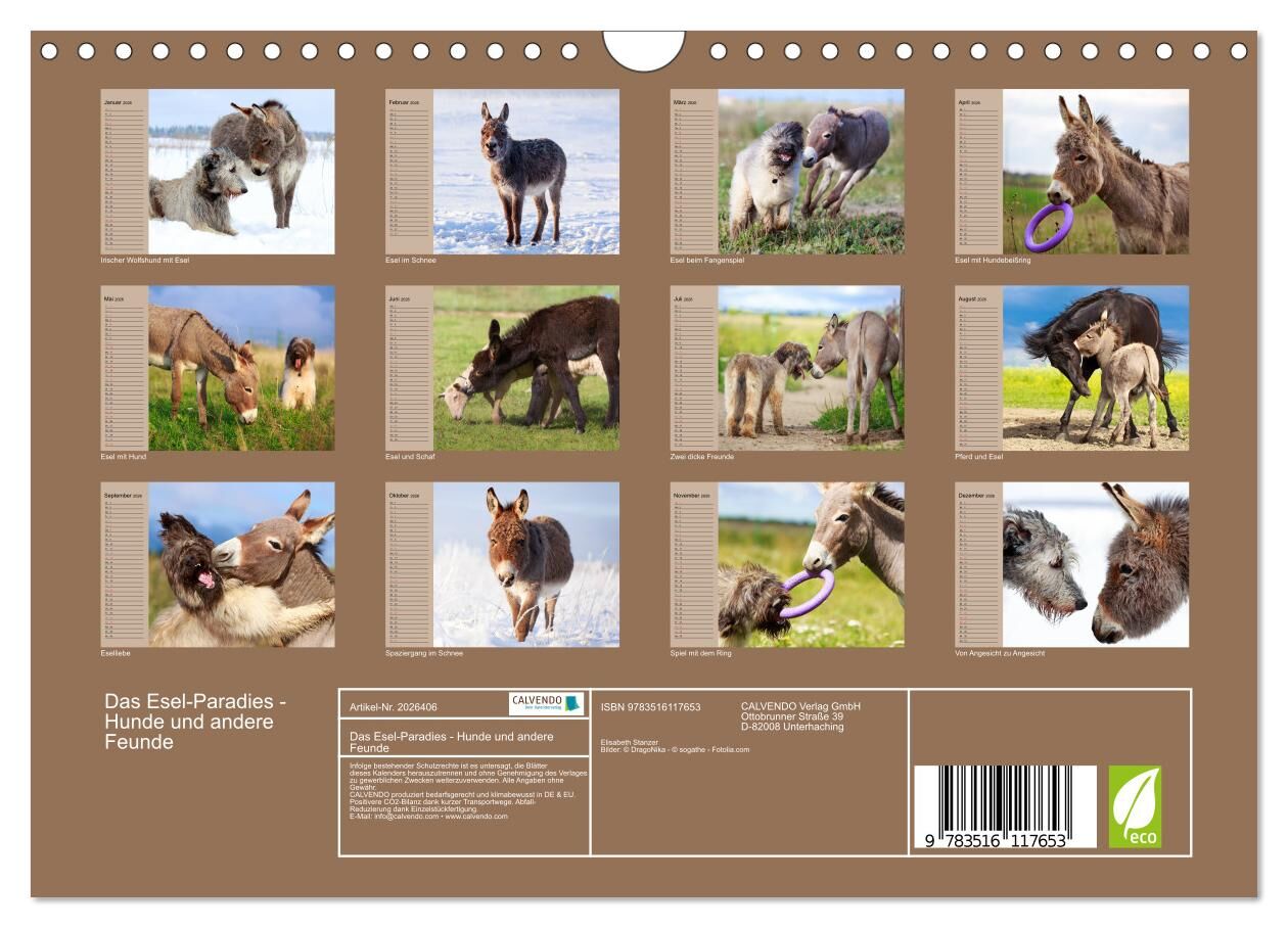 Das Esel-Paradies - Hunde und andere Feunde (Wandkalender 2026 DIN A4 quer), CALVENDO Monatskalender