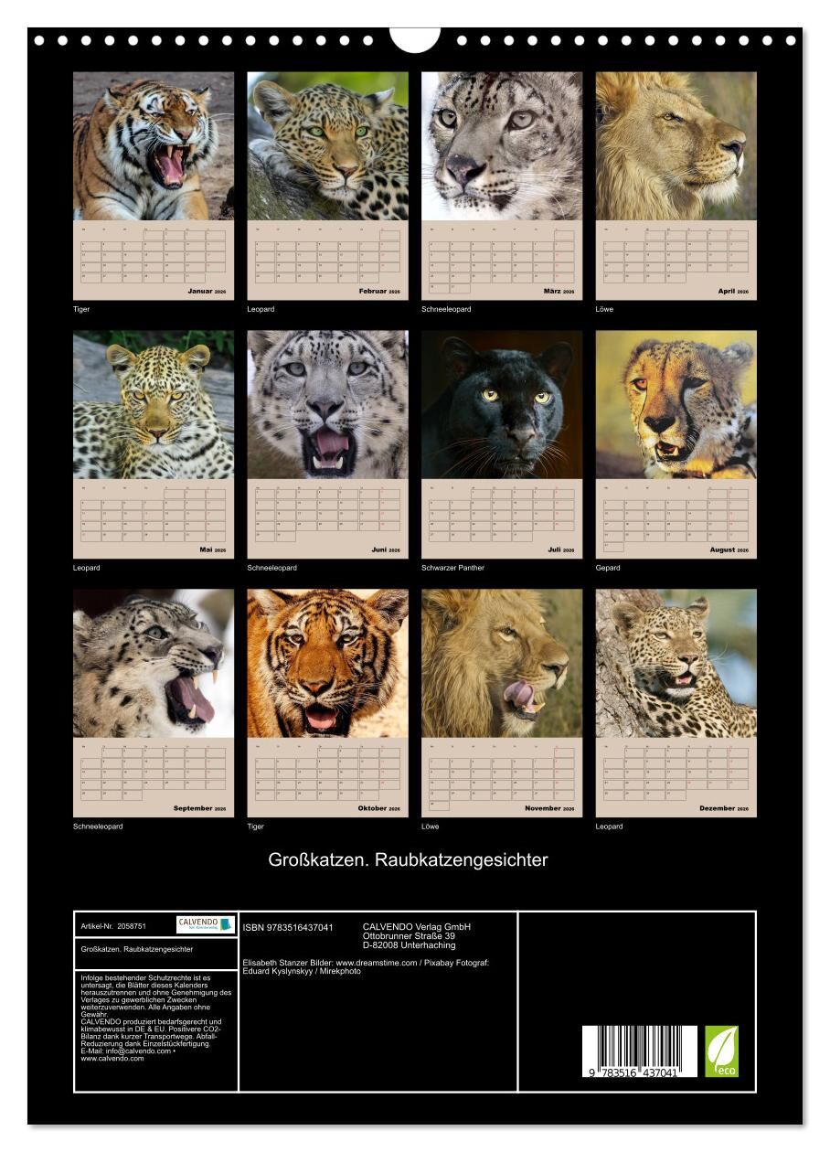 Großkatzen. Raubkatzengesichter (Wandkalender 2026 DIN A3 hoch), CALVENDO Monatskalender