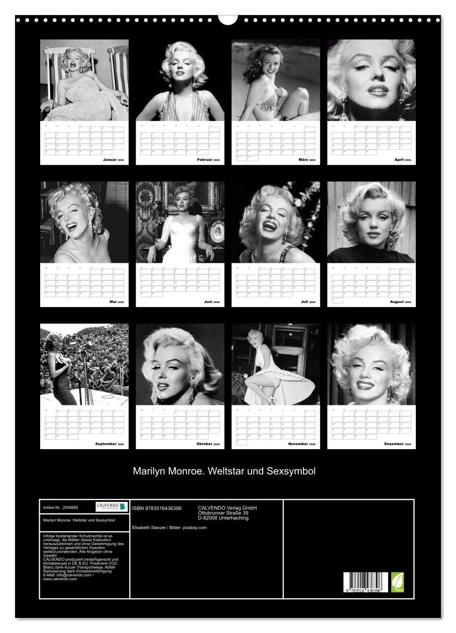 Marilyn Monroe. Weltstar und Sexsymbol (Wandkalender 2026 DIN A2 hoch), CALVENDO Monatskalender
