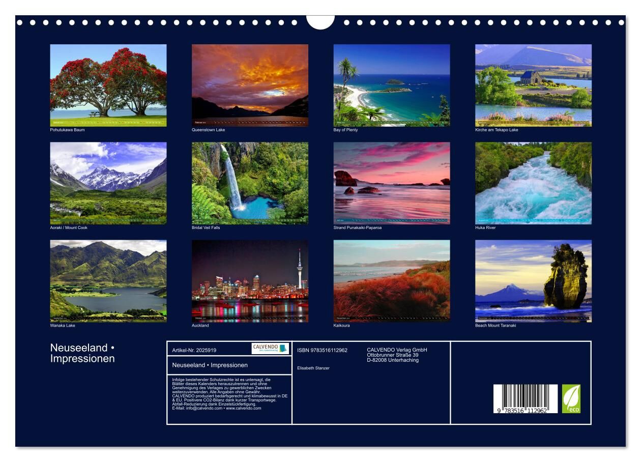 Neuseeland Impressionen (Wandkalender 2026 DIN A3 quer), CALVENDO Monatskalender