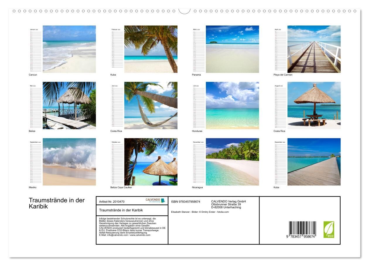 Weiße Sandstrände, Palmen und glasklares Wasser unter der karibischen Sonne. Immer wieder kann man sich an solchen Bilder erfreuen und Kraft schöpfen, im manchmal grauen Alltag. Ein Planer der die Sehnsucht weckt und vor allem die Vorfreude, auf den nächsten U...