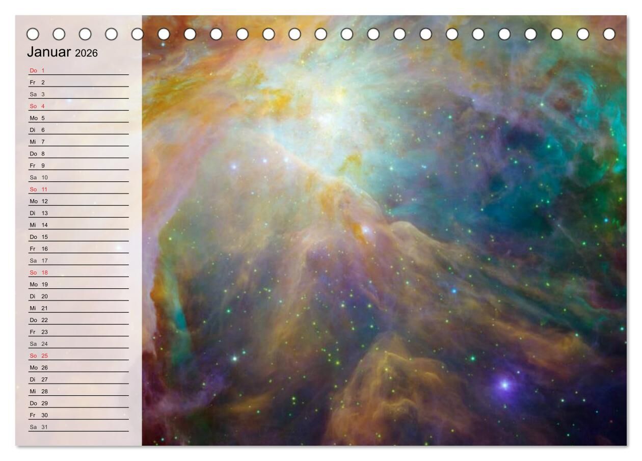 Universum. Farbenpracht der Gasnebel (Tischkalender 2026 DIN A5 quer), CALVENDO Monatskalender