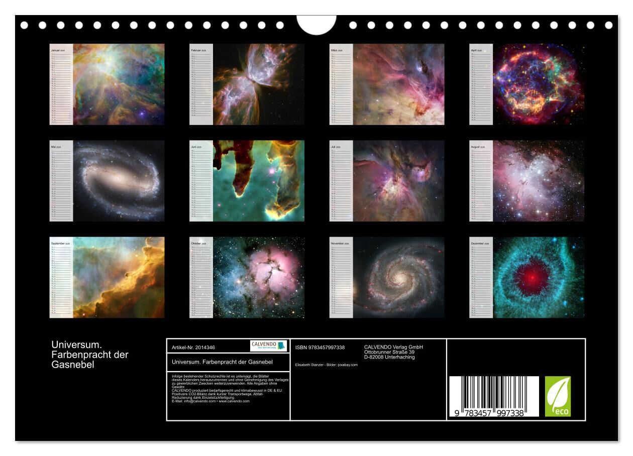 Universum. Farbenpracht der Gasnebel (Wandkalender 2026 DIN A4 quer), CALVENDO Monatskalender