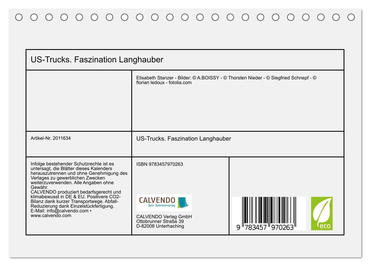 Dieser Kalender gehört zu den Calvendo Bestsellern. Mächtige Trucks begeistern immer wieder. Die gewaltige Schönheit der US-Trucks ist immer ein Hingucker und unglaublich beeindruckend. In den USA sind die coolen Langhauber erlaubt und diese Freiheit beschert ...