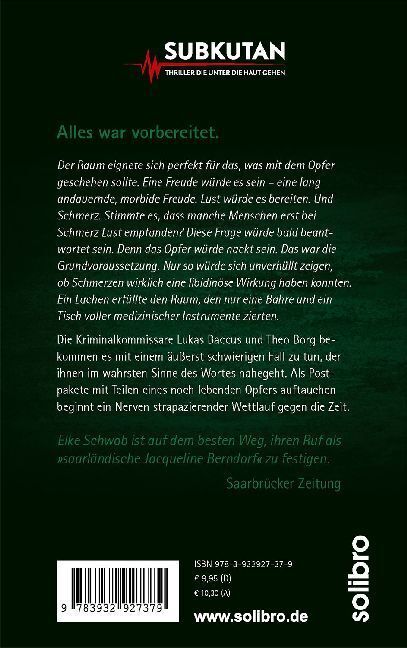 Alles war vorbereitet. Der Raum eignete sich perfekt für das, was mit dem Opfer geschehen sollte. Eine Freude würde es sein eine langandauernde, morbide Freude. Lust würde es bereiten. Und Schmerz. Stimmte es, dass manche Menschen erst bei Schmerz Lust empfand...