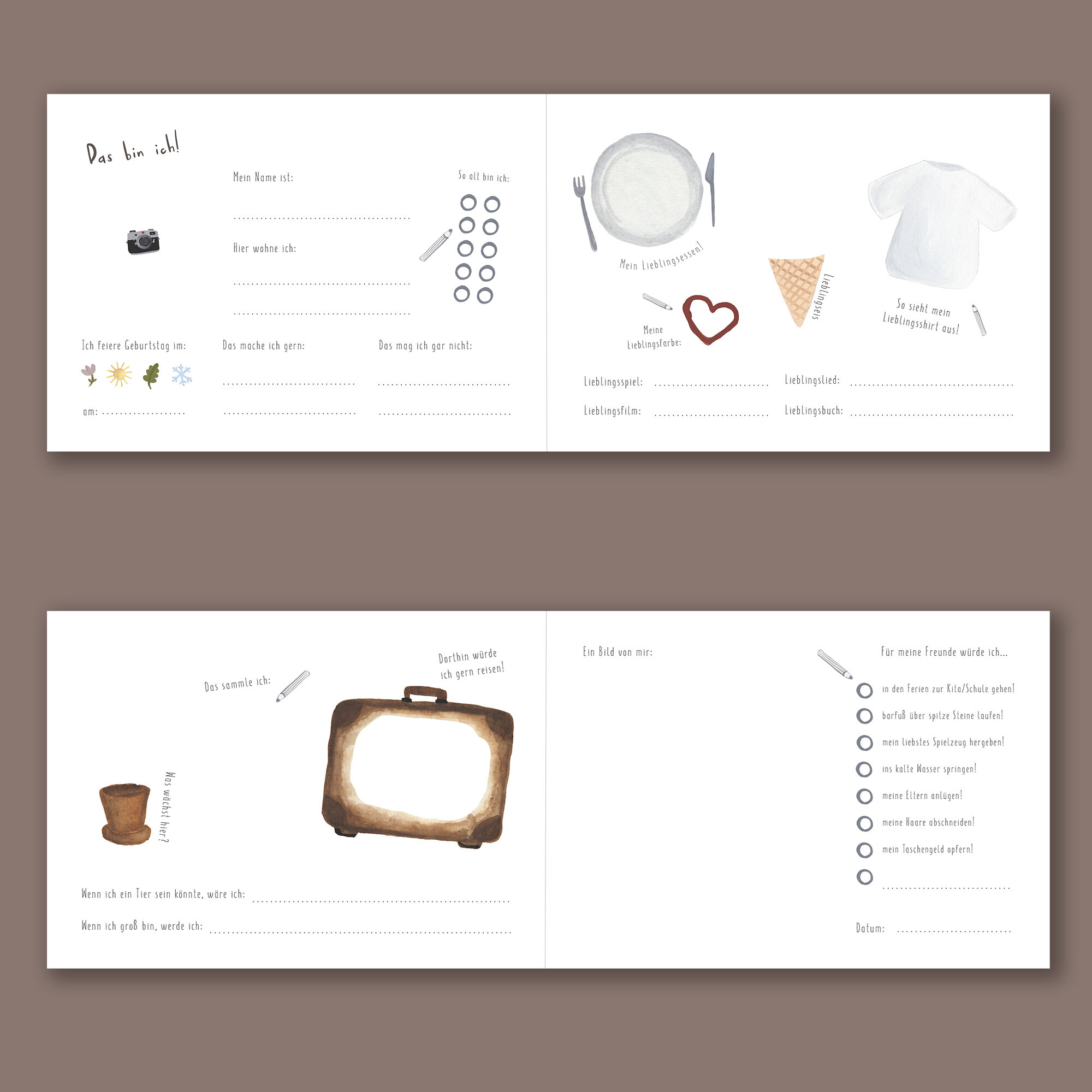 Dieses Freundebuch ist ein ganz besonderer Ort. Hier können nicht nur deine 20 Freunde alle wichtigen Informationen zur Person eintragen, sie dürfen noch vieles mehr! Du und deine Freunde können auf der Was sind Freunde für dich? Seite auch ihre Antwort auf di...