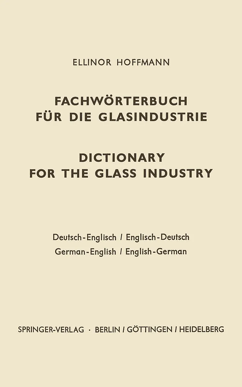 Das vorliegende Buch ist der Versuch einer Zusammen stellung der gebrauchlichsten Fachausdrucke aus der deutschen und anglo-amerikanischen Glasindustrie. Da diesen Industriezweig einerseits die Traditionsgebunden heit eines jahrtausendealten Handwerks, anderer...