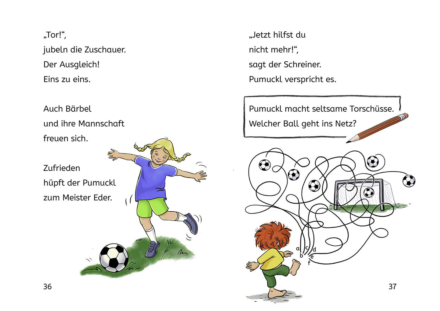 Pumuckl ist im Fußballfieber! Der Kobold begleitet Meister Eder zu einem entscheidenden Spiel und bringt auf dem Fußballplatz alles durcheinander. Eine lustige Pumuckl-Geschichte für Erstleser. Einfache Fibelschrift, viele Illustrationen und Leserätsel: sechs ...