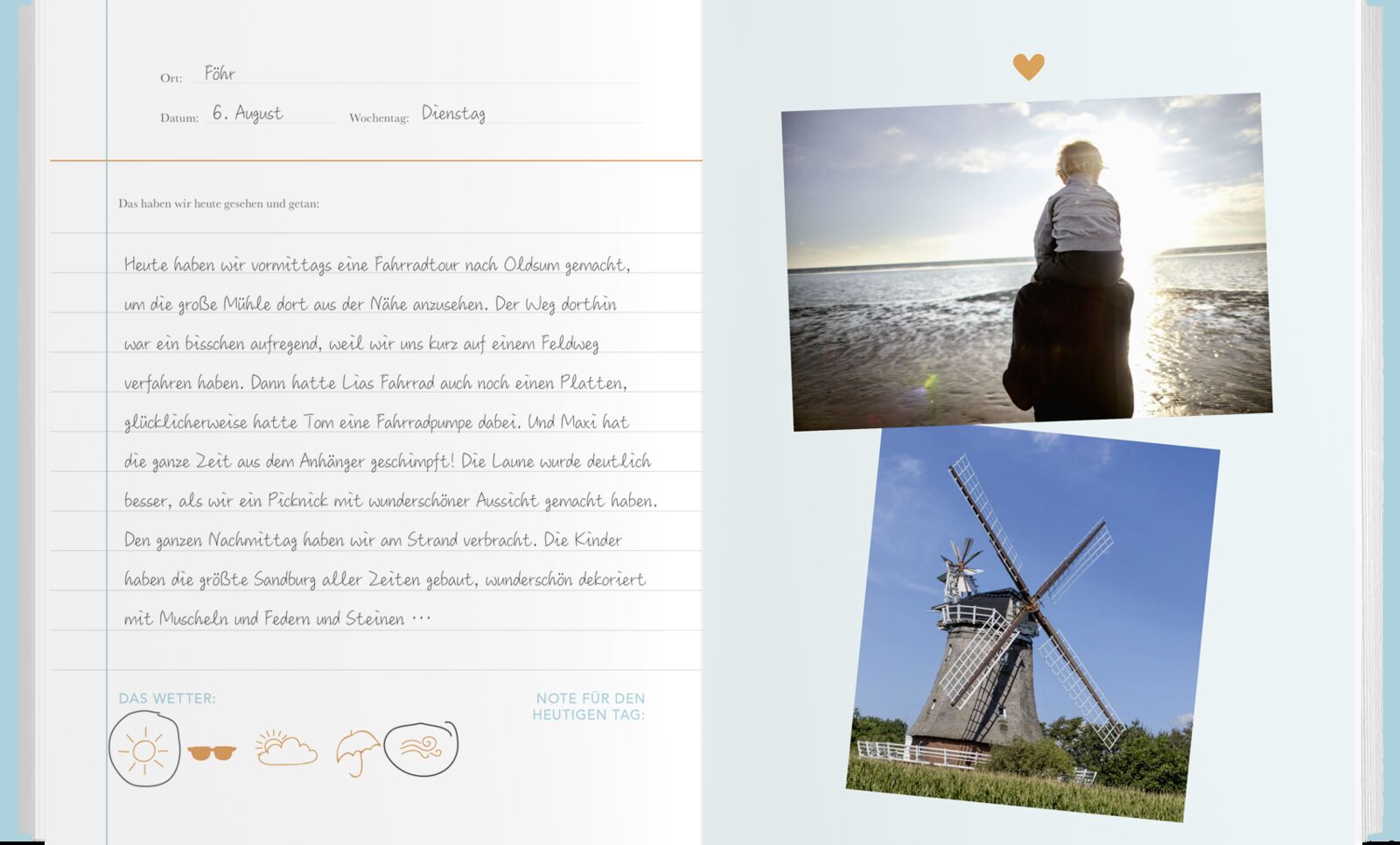 Urlaubserinnerungen für die ganze Familie In diesem liebevoll gestalteten Reisetagebuch von Bestseller-Autorin Elma van Vliet kann die Familie spielerisch alle schönen Erlebnisse und lustigen Momente gemeinsamer Urlaube festhalten. Egal ob langer Urlaub oder ...