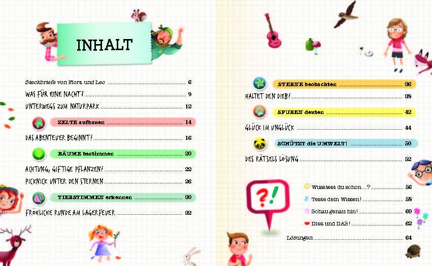 Große Aufregung beim Geschwisterpaar Flora und Leo. Am nächsten Tag beginnt die lange erwartete Erkursion mit der Jugendgruppe: Es geht zum Zelten in den Wald. Taschenlampe, Trinkflasche, Wanderschuhe alles muss in den Rucksack! Am ausgewählten Zeltplatz im Wa...