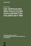 Keine ausführliche Beschreibung für "Die Verfassung der staatlichen Zahlungsmittel Italiens seit 1861" verfügbar. Frontmatter -- Inhalt -- Quellen und Literatur -- Einleitung -- I. Teil. Die Währung des Königreiches von 1861 bis 2. Mai 1866 -- II. Te...