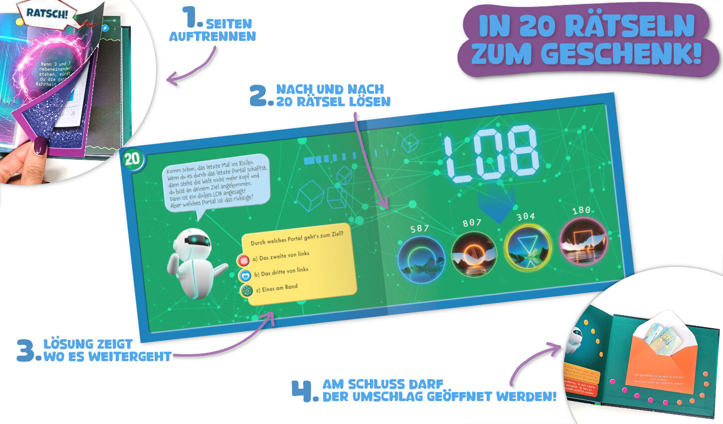 Das Konfi-Escape Buch 20 Rätsel führen zum Geschenk! Perfekt als Zugabe für ein Gelgeschenk zur Kofirmation: Das Konfirmations-Geschenk für Escape Room Fans, Spannungs- und Rätselliebende. Wenn alle Rätsel gelöst sind, dann darf der Umschlag im Buch geöffnet u...