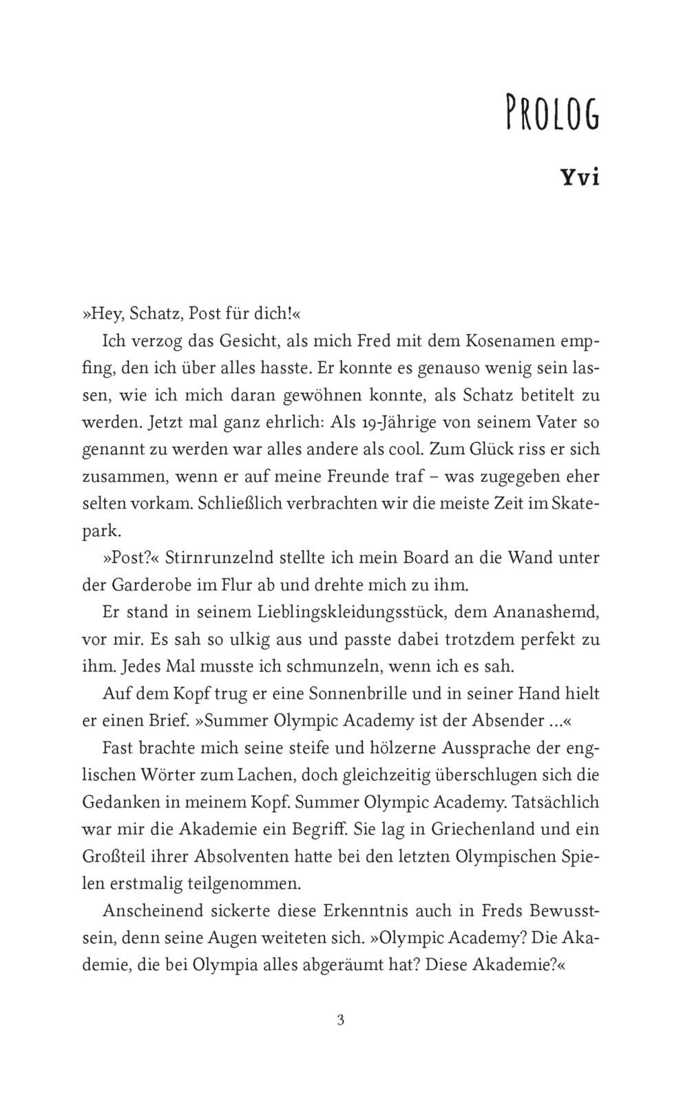 Zwischen uns nur der Wettkampf oder doch so viel mehr? Yvi lebt für ihren Sport sie liebt das Tempo in der Halfpipe und das Adrenalin, wenn ihr Skateboard-Trick sitzt. Doch an der renommierten Olympic Academy in Griechenland zählt nur eins: gewinnen, Konkurre...