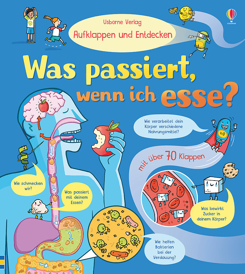 Erfahre, wozu dein Körper Proteine und Vitamine braucht und warum Bakterien in deinem Darm leben. Jeder Bissen, den du schluckst, unternimmt eine spannende Reise durch deinen Körper. Schau unter mehr als 70 Klappen und finde heraus, was passiert, wenn du isst...
