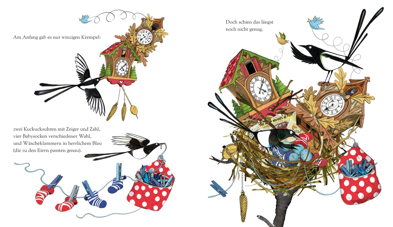 Brauchen wir das wirklich ALLES? Die Elster-Eltern bauen ein Nest. So wie immer. Aber plötzlich sind sie davon überzeugt, dass das noch nicht genug ist. Schließlich soll es ihren Kindern an nichts fehlen, wenn sie erst einmal aus ihren Eiern geschlüpft sind. ...