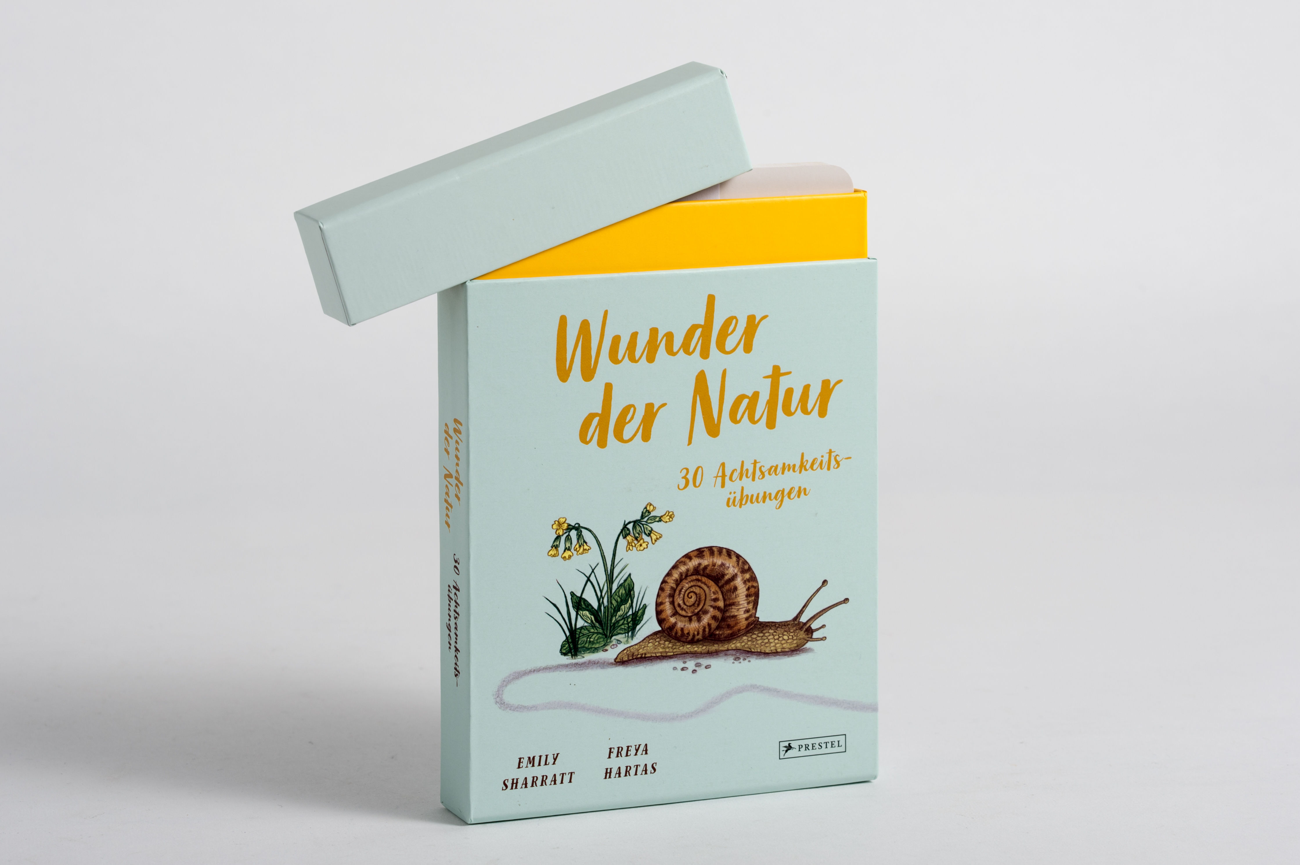 Die 30 Achtsamkeitsübungen in diesem wunderschönen illustrierten Kartenset helfen Kindern, in immer unruhiger werdenden Zeiten zur Ruhe kommen. Bilder aus der Natur unterstützen die Kinder bei ihrer achtsamen Selbstwahrnehmung. "Stell dir eine Honigbiene vor, die emsig zwischen den Blüten hin und herfliegt und Nektar sammelt. Schließe die Augen. Atme tief durch die Nase ein. Lasse beim Ausatmen deinen Atem summen wie eine Biene und spüre, wie das Geräusch in deiner Brust und deinem Kopf vibriert..." oder "Setze dich auf den Boden, die Fußsohlen berühren sich und die Knie fallen auseinander. Stelle dir einen Schmetterling vor, der gerade aus seiner Puppe schlüpft. Seine Flügel sind noch ganz zerknittert. Atme tief ein und stelle dir beim Ausatmen vor, dass deine Beine diese Schmetterlingsflügel sind, die sich langsam entfalten und ausbreiten. Beim Weiteratmen beginnen deine Schmetterlings-Beine sich auf- und ab zu bewegen, fertig zum Abflug!..." Die Übungen sind unter Anleitung schon für jüngere Kindergartenkinder geeignet und unterstützen auch in der anspruchsvollen Schulzeit die Kinder im Alltag, der von ihnen so viel fordert. Sie können auch in der Familie oder in Gruppen (in Kindergarten, Grundschule, Mittagsbetreuung etc.) ausgeführt werden oder als kleine meditative Übung zur Vorbereitung auf eine ruhige Nacht nach aufregenden Tagen. Auf einer zusätzliche Karte gibt es noch Informationen zur Illustratorin, der Autorin und dem Konzept. Dieses Buch wird klimaneutral produziert. Ebenfalls in der Reihe lieferbar: Wunder der Natur zum Innehalten und Staunen (ISBN 978-3-7913-7447-5) Wunder der Natur im Park (ISBN 978-3-7913-7502-1) Wunder der Natur. Das Gute-Nacht-Buch (ISBN 978-3-7913-7525-0) Wunder der Natur zum Entdecken und Verstehen (ISBN 978-3-7913-7492-5) Wunder der Natur. Ein Augenblick zum Innehalten und Staunen (ISBN 978-3-7913-7543-4)
