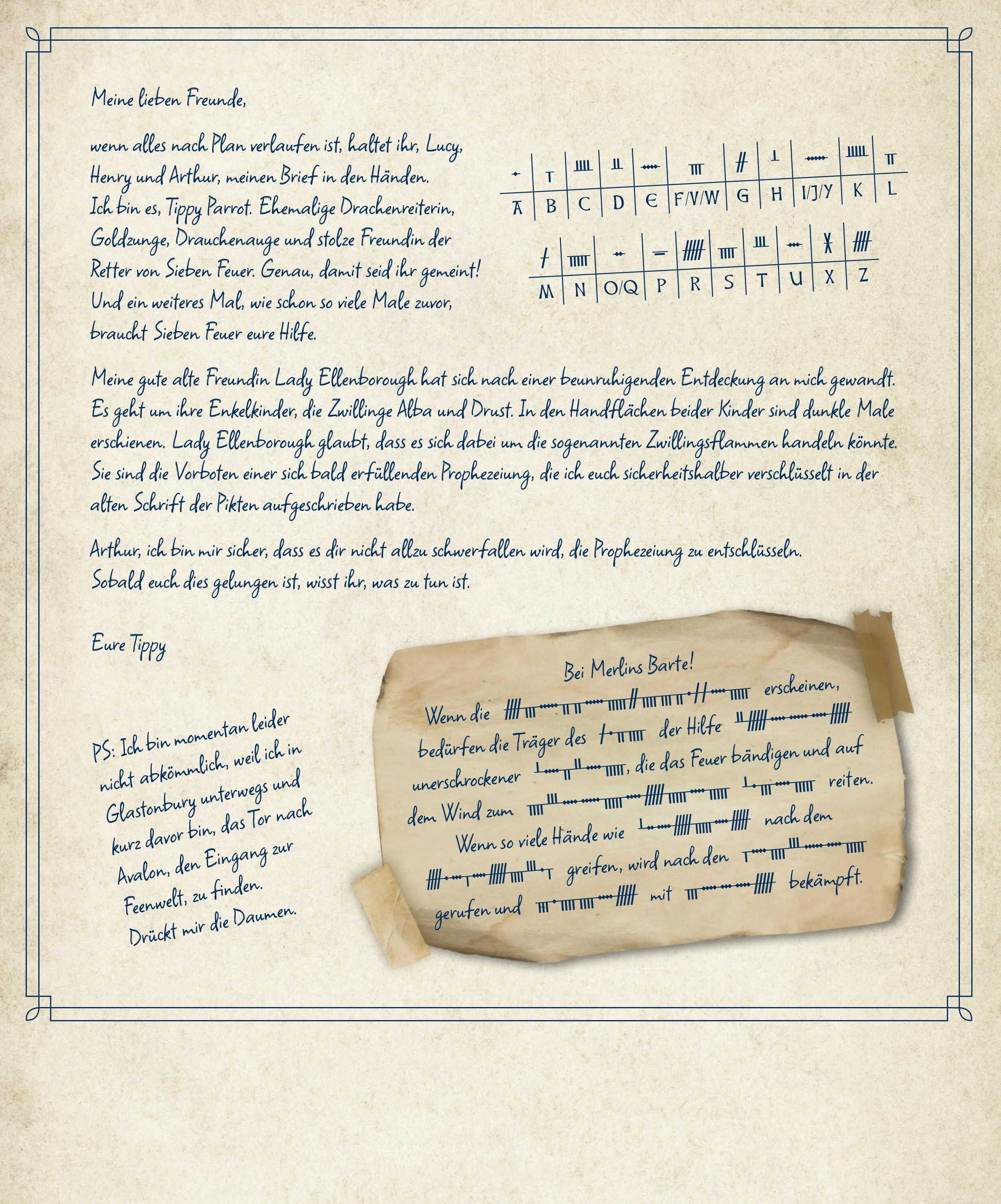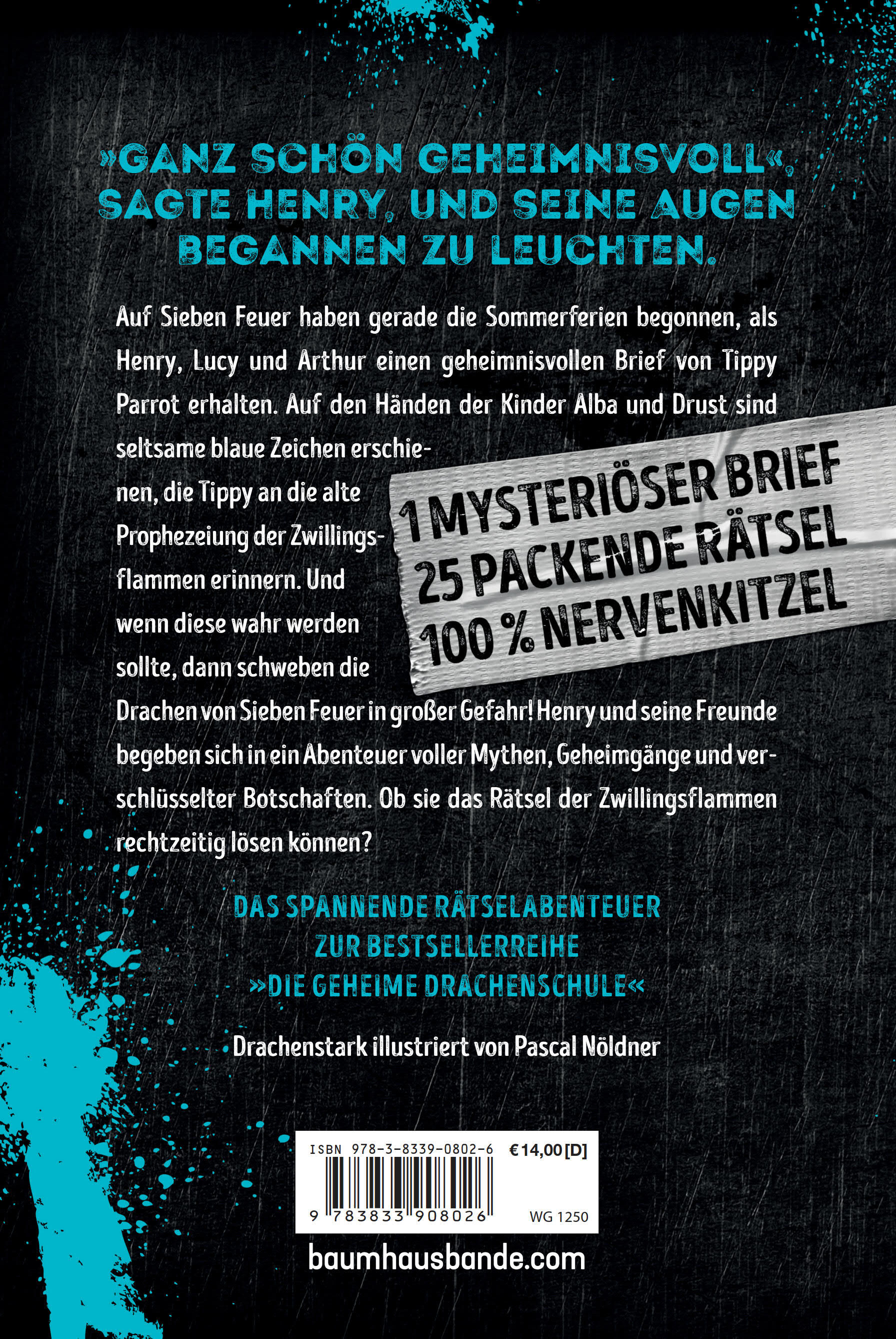 Geheime Drachenschule GEHEIM Henry, Lucy und Arthur erhalten einen geheimnisvollen Brief von Tippy Parrot. Deren Freundin Lady Ellenborough und ihre Enkel Alba und Drust brauchen Hilfe bei der Lösung eines Rätsels: Auf den Händen der Kinder sind seltsame blaue...