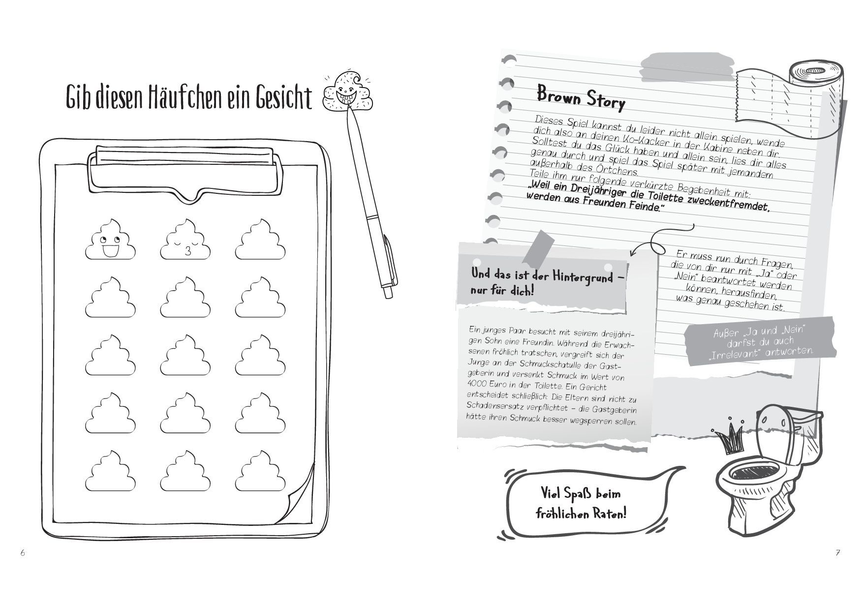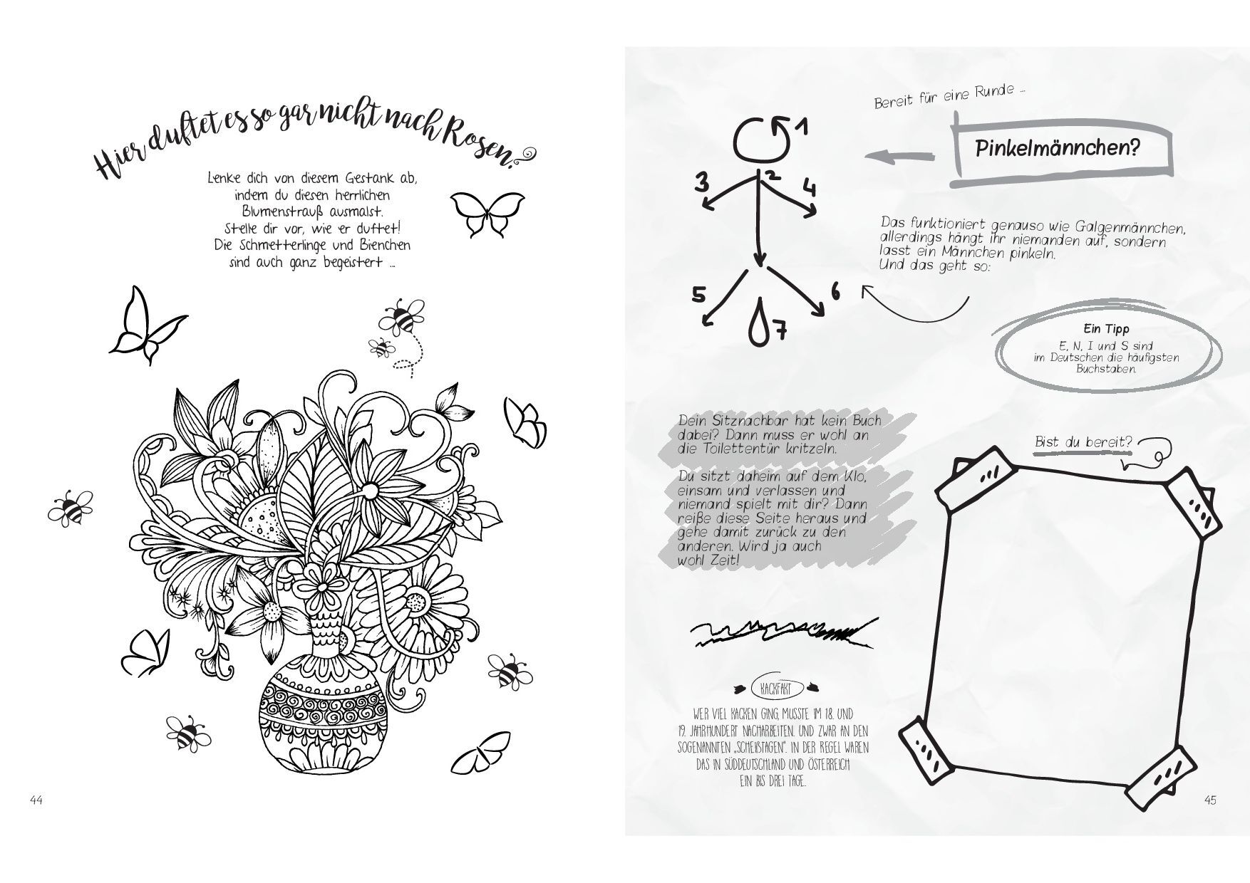 Mal ganz ehrlich: auf dem Klo zu lesen, führt doch zu nichts. Erst sucht man ewig die richtige Stelle im Buch und wenn man sie endlich gefunden hat, tut einem der Hintern vom langen Sitzen weh. Hier kommt endlich Abhilfe: Die Spielesammlung fürs Klo ist leicht...