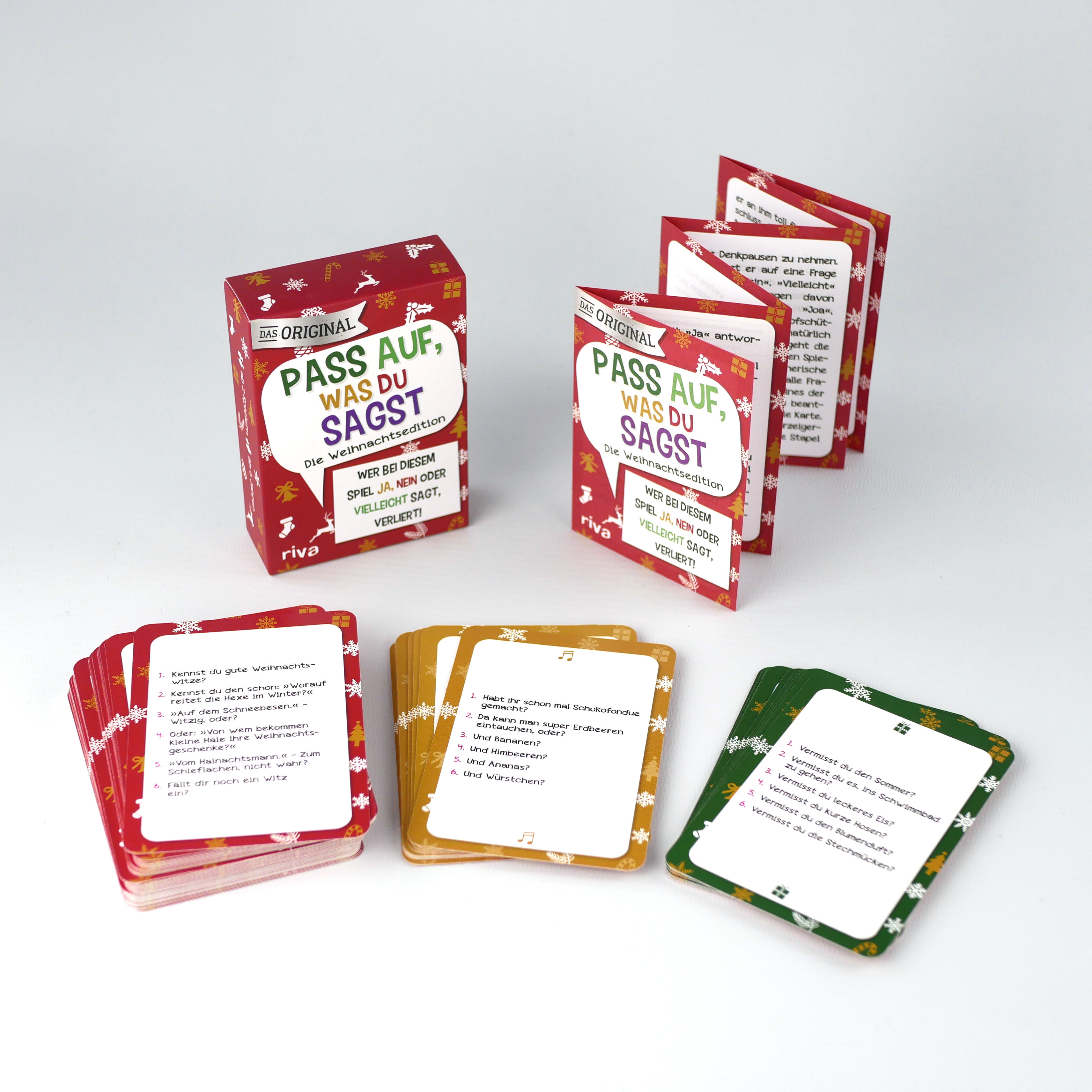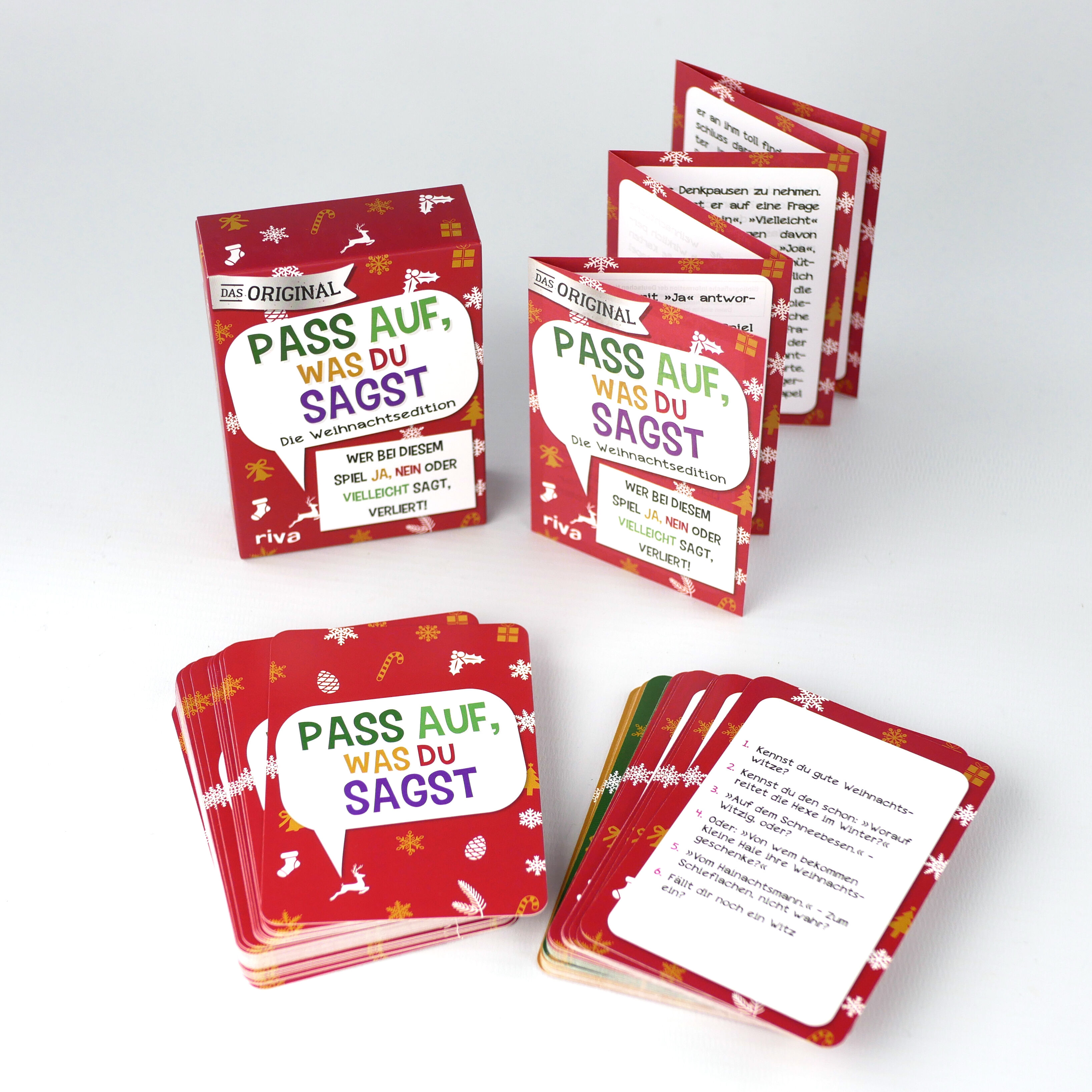 »Magst du Geschenke?« »Schmecken dir Lebkuchen?« »Glaubst du an den Weihnachtsmann?« Diese und noch viele weitere Fragen rund um die besinnliche Adventszeit erwarten die Spieler in dieser weihnachtlichen Edition von »Pass auf, was du sagst«. Das Schwierige dab...