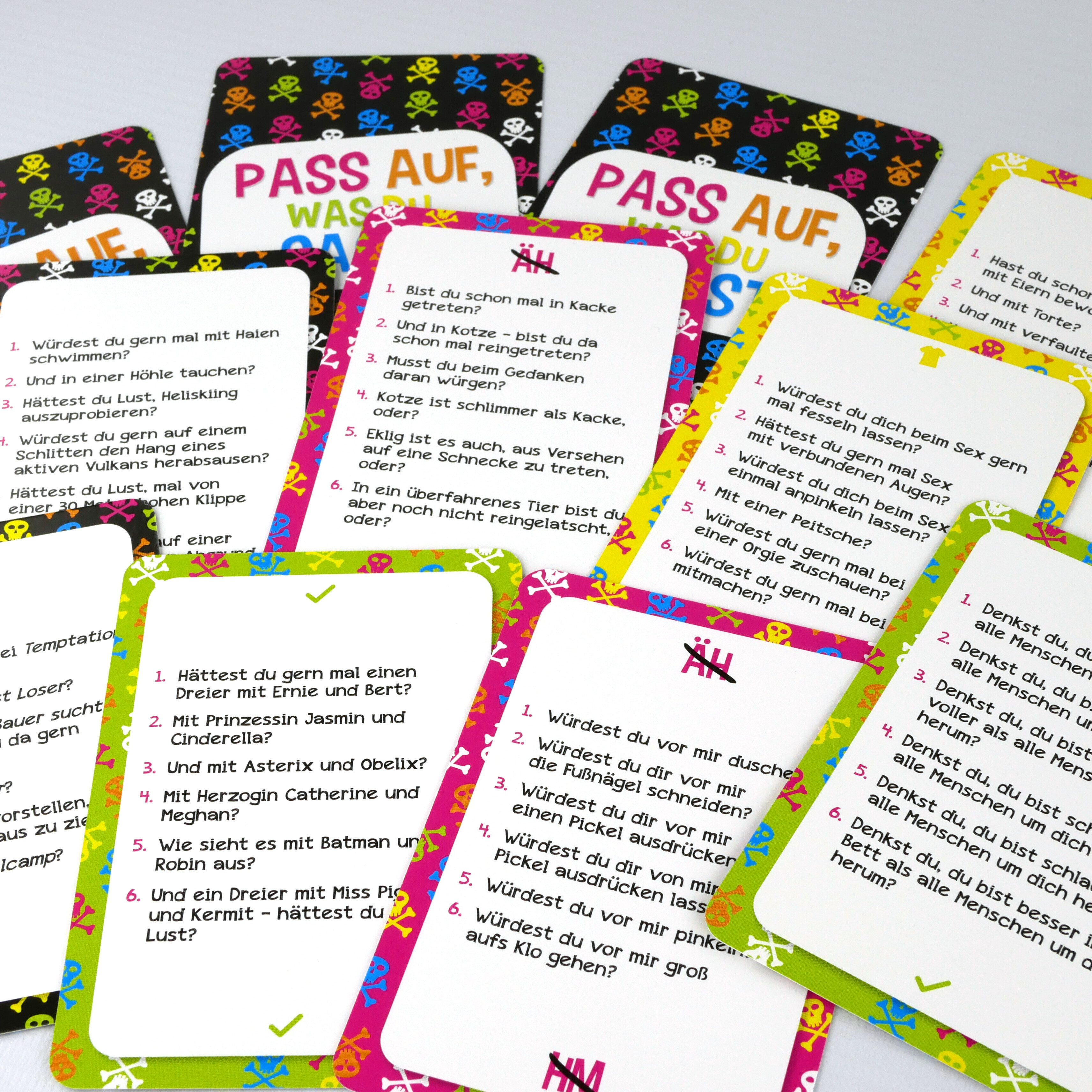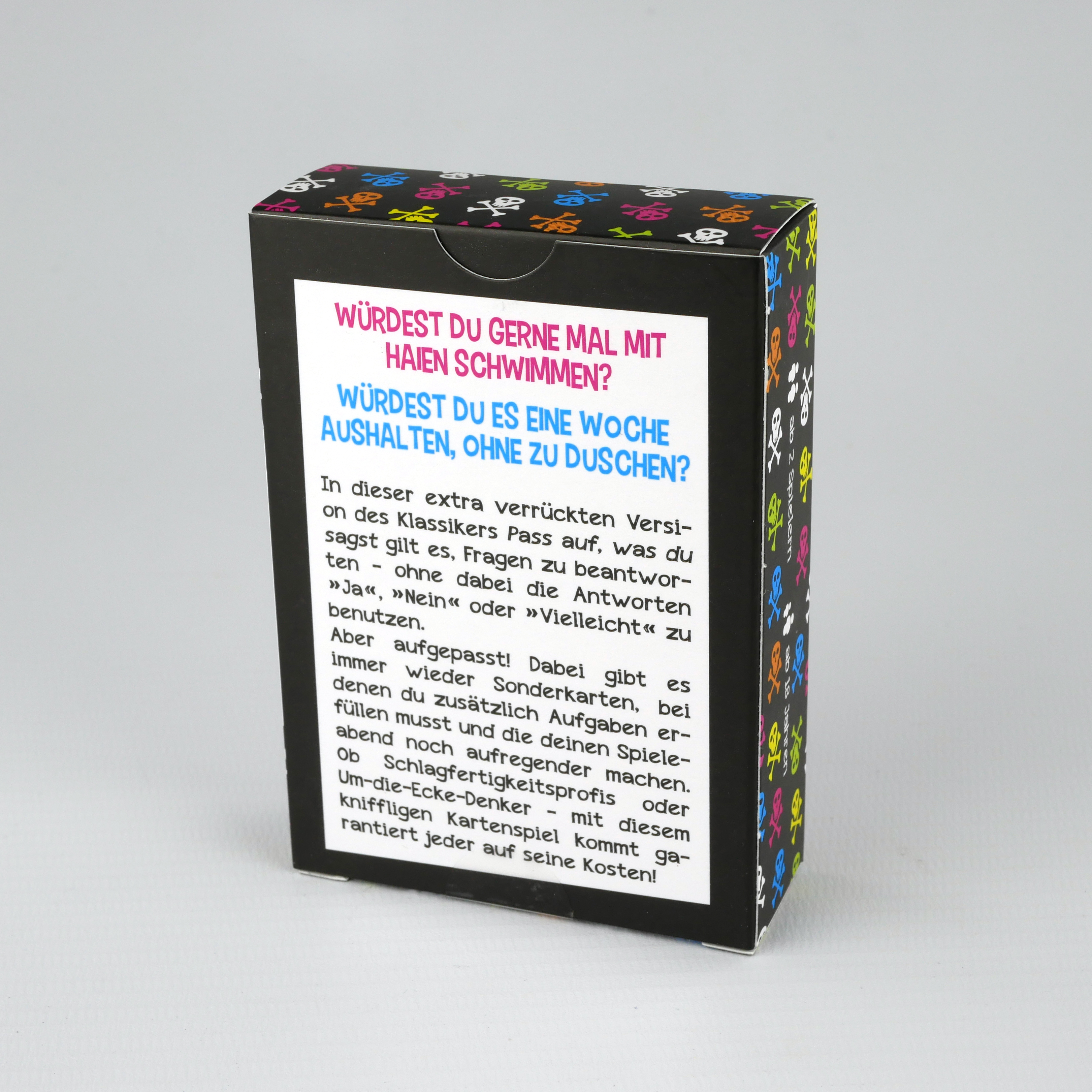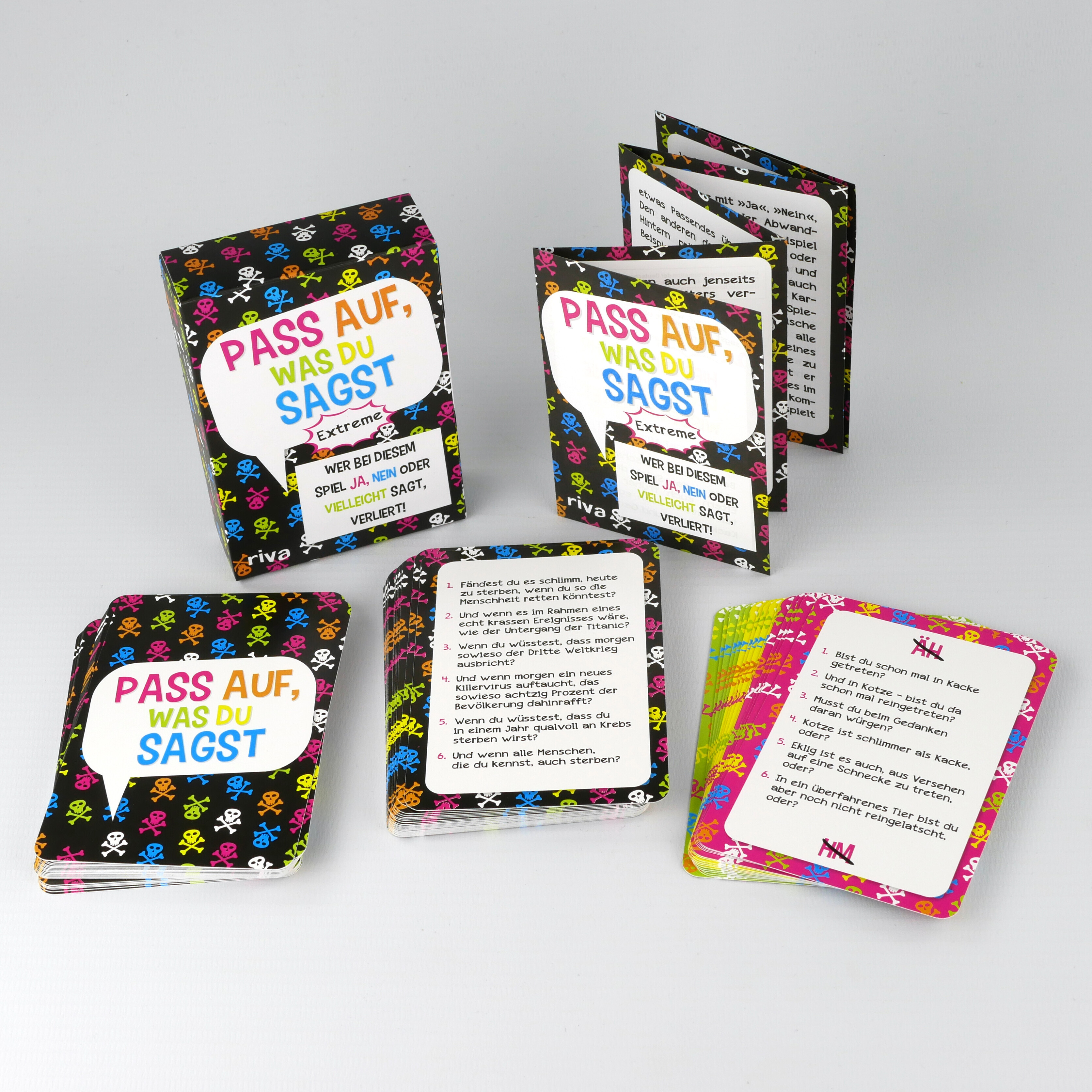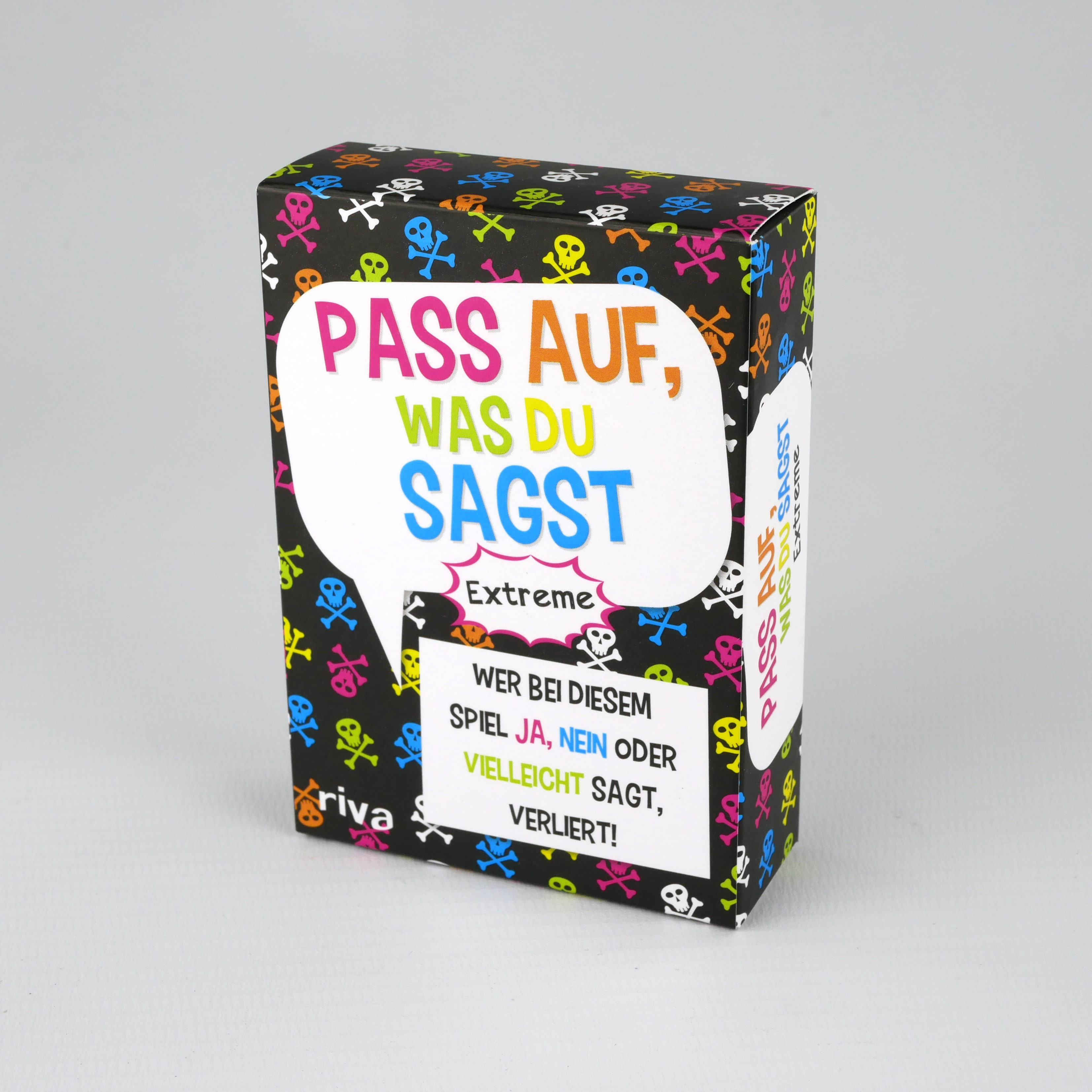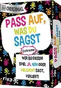 »Bist du eine Frau?« »Kannst du Rad fahren?« »Hast du schon mal ein Geheimnis ausgeplaudert?« In dieser Version von »Pass auf, was du sagst« müssen sich die Spieler extra schwierigen Fragen stellen. Aber nur wer clever genug ist, kann gewinnen, denn die Antwor...