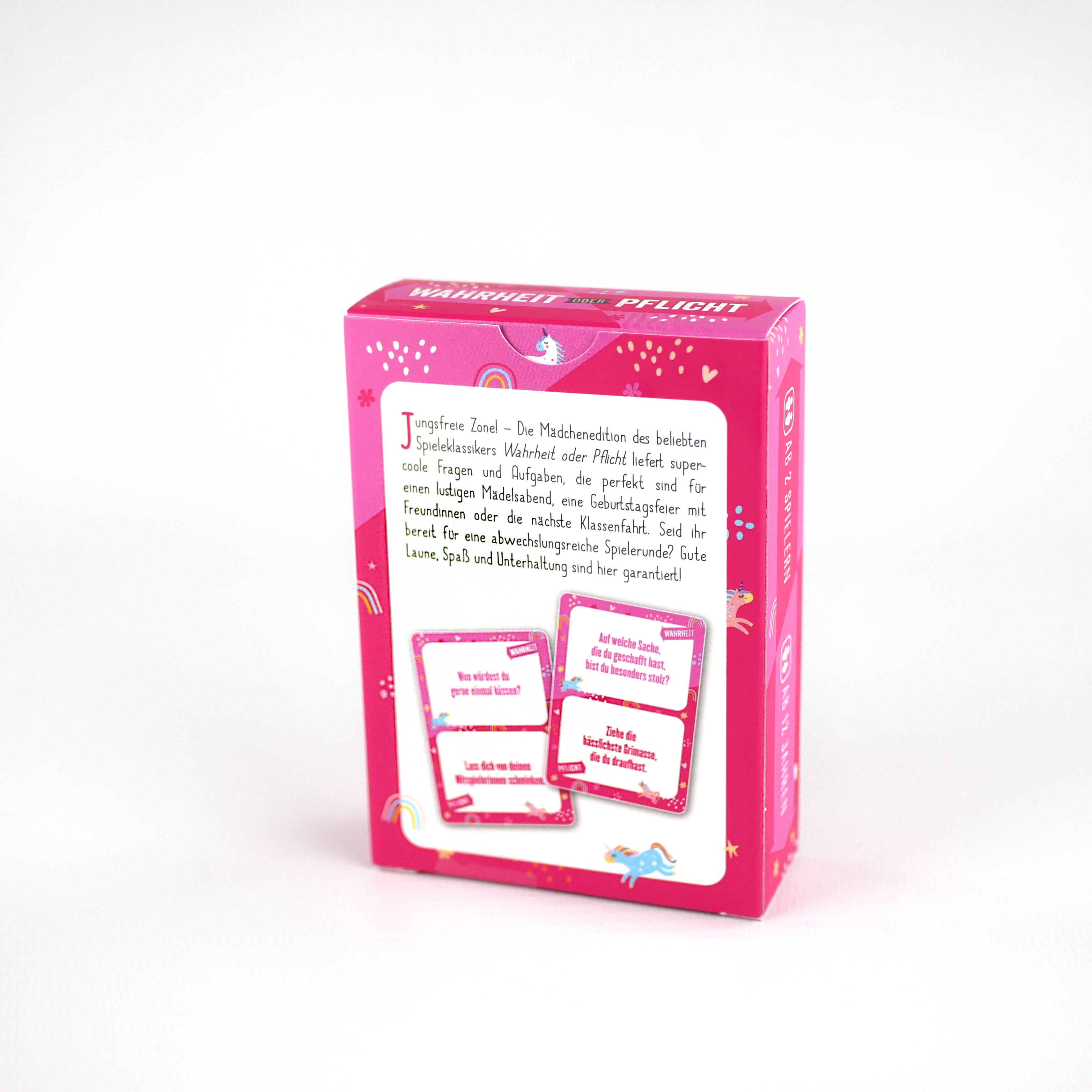 Wahrheit oder Pflicht - Die Mädchenedition Jungsfreie Zone! Die Mädchenedition des beliebten Spieleklassikers Wahrheit oder Pflicht liefert supercoole Fragen und Aufgaben, die perfekt sind für einen lustigen Mädelsabend, eine Geburtstagsfeier mit Freundinnen o...