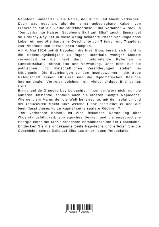 Napoleon Bonaparte ein Name, der Ruhm und Macht verkörpert. Doch was geschah, als der einst unbesiegbare Kaiser von Frankreich auf die kleine Mittelmeerinsel Elba verbannt wurde? In "Der verbannte Kaiser: Napoleons Exil auf Elba" taucht Emmanuel de Grouchy-Ney...