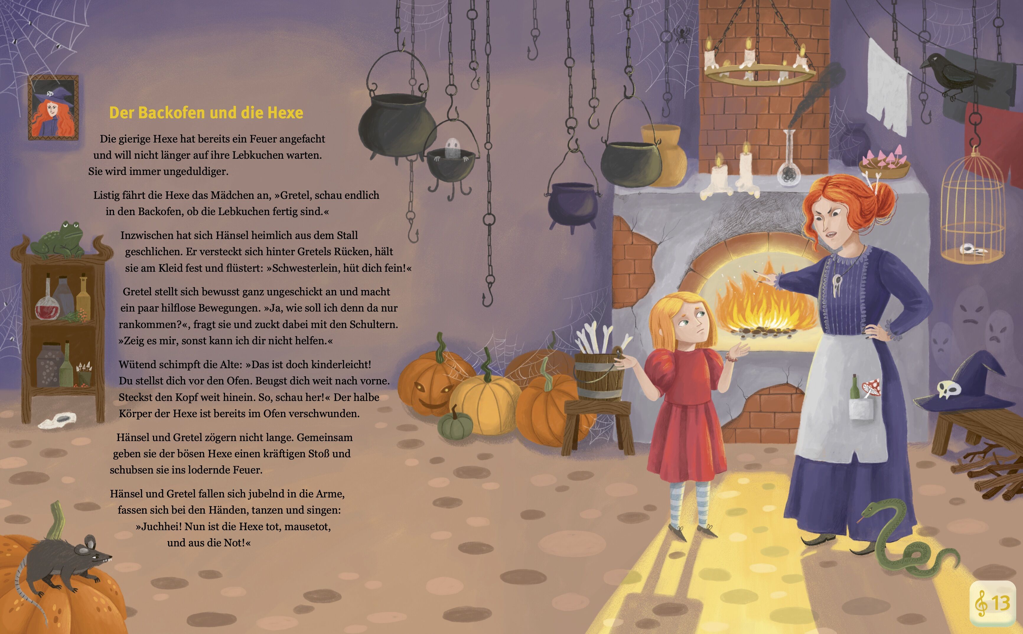 Hänsel und Gretel werden von ihren Eltern als Strafe in den Wald geschickt, um Beeren zu sammeln. Bei einsetzender Dämmerung kommen die Geschwister vom Heimweg ab, entdecken ein Pfefferkuchenhaus und probieren hungrig davon. Darin wohnt eine alte, hässliche He...