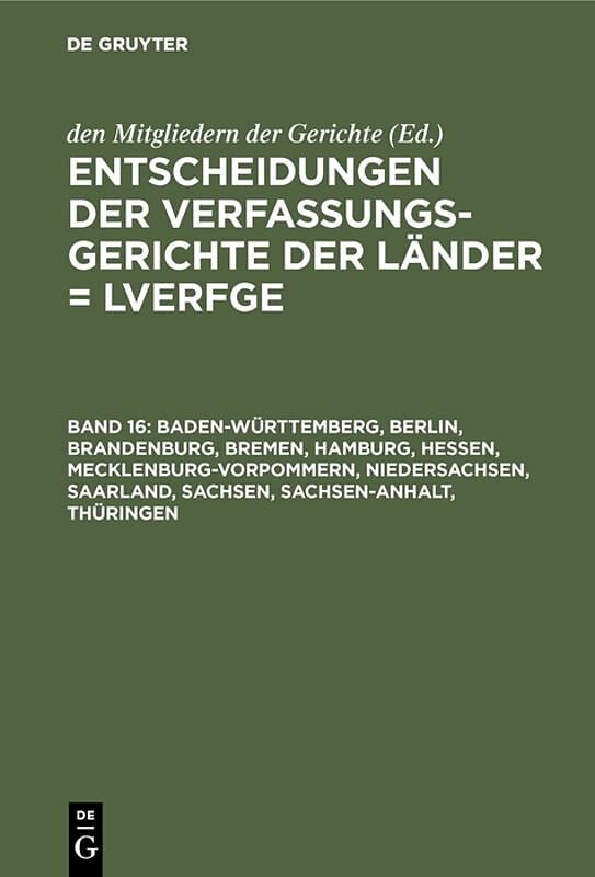 This collection of case law presents the decisions of the participating Constitutional Courts of the Federal States uniform, in a clear way. The decisions merit particular attention, because the inter-connections between the German Basic Law and the Federal le...