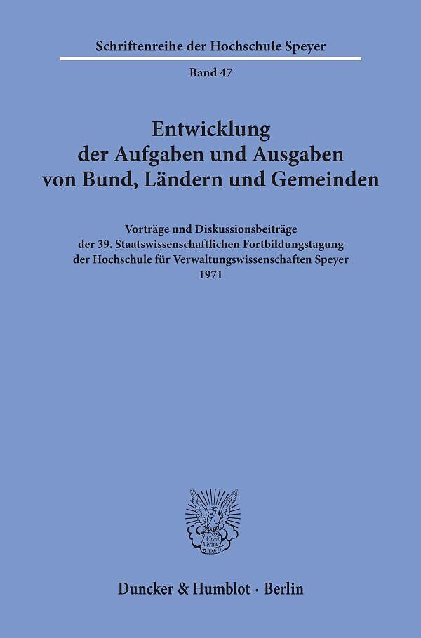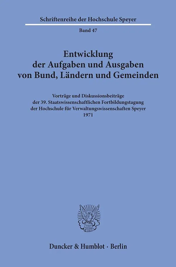 Klappentext Für diesen Titel ist noch kein Beschreibungstext vorhanden. Inhalt Inhalt: H. Eicher, Problematik der mehrjährigen Finanzplanung - J. Kölble, Entwicklung der Bundesaufgaben und ihrer Finanzierung im Hinblick auf das Grundgesetz - O. Barbarino, Entf...