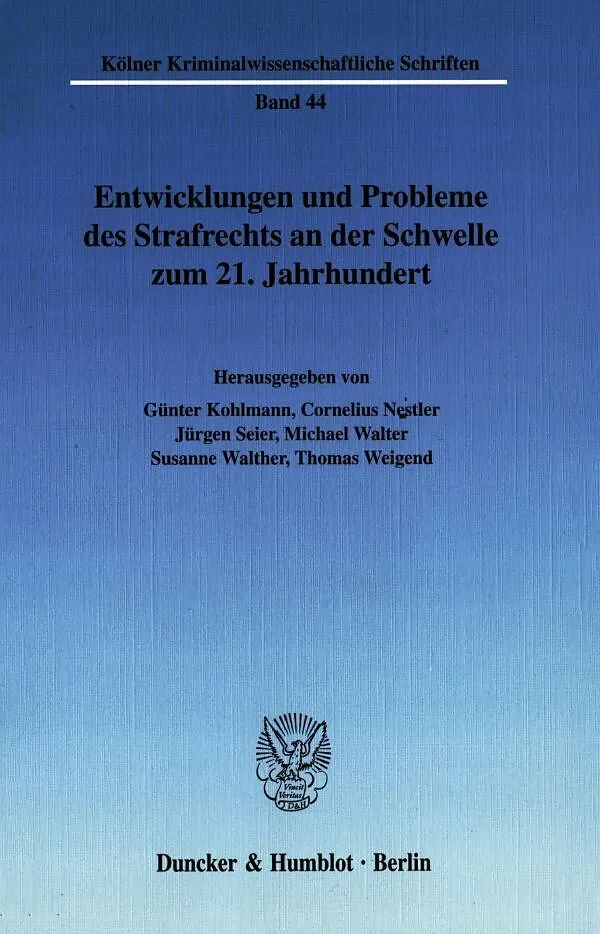 Die in dem Band versammelten Beiträge geben einen Einblick in die gegenwärtige kriminalwissenschaftliche Diskussion. Die Texte sind aus einer Ringvorlesung an der Universität zu Köln erwachsen, an der nahezu alle aktiven Professorinnen und Professoren der Rech...