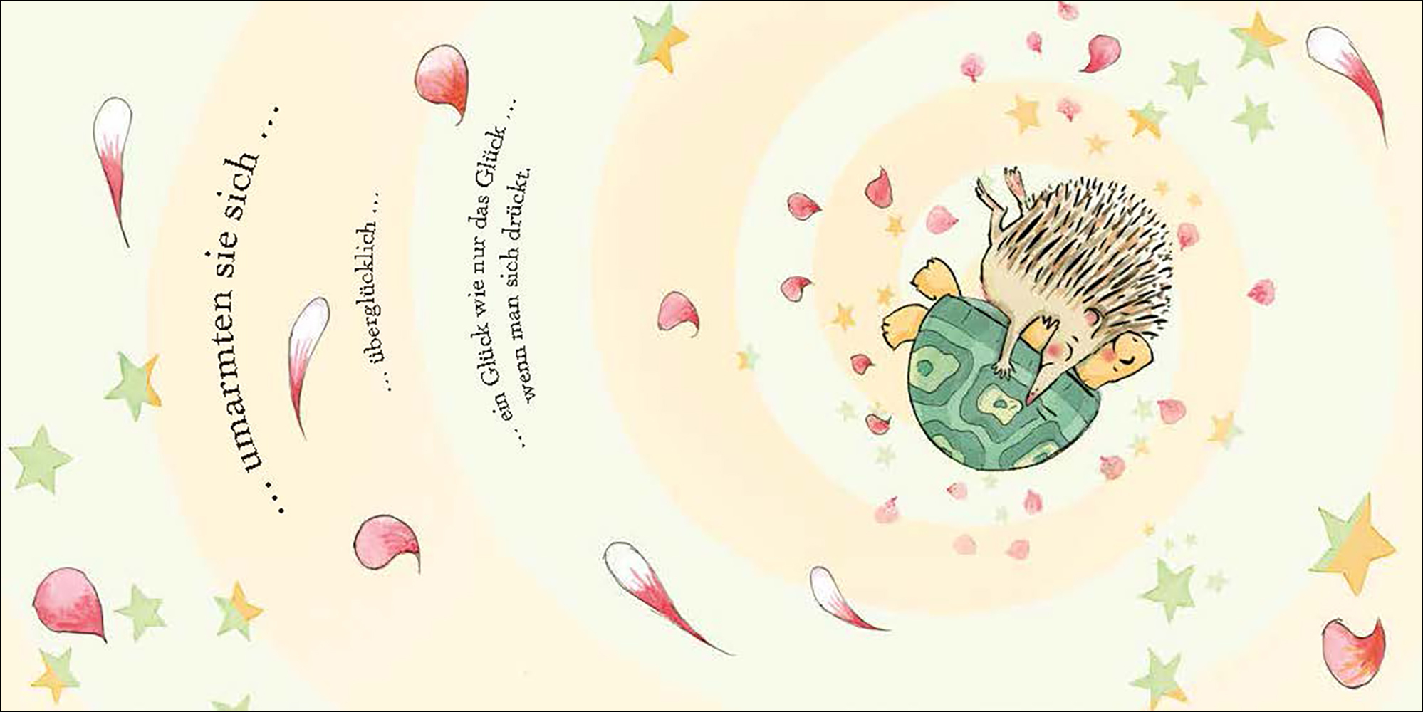 Der Igel ist traurig. Er möchte so gerne umarmt werden, doch die anderen Tiere haben scheinbar entsetzlich Wichtiges zu tun: Der Fuchs muss dringend eine Mülltonne durchwühlen, das Eichhörnchen zählt emsig seine Nüsse, die Elster muss unbedingt gerade jetzt ei...