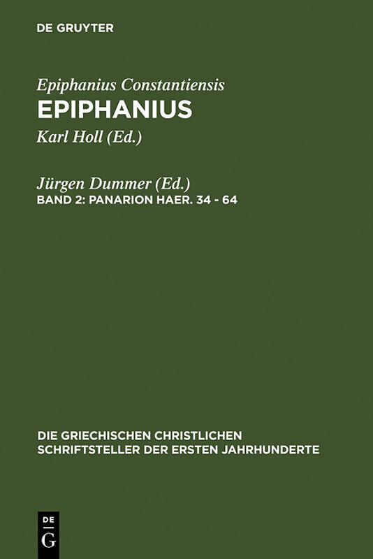 Klappentext The series of Greek Christian Writers of the First Centuries AD (GCS) started in Leipzig in 1897, then moved to Berlin, and to Walter de Gruyter in 2001 and has been publishing the results of the Academy Project Greek Christian Writers , which was ...