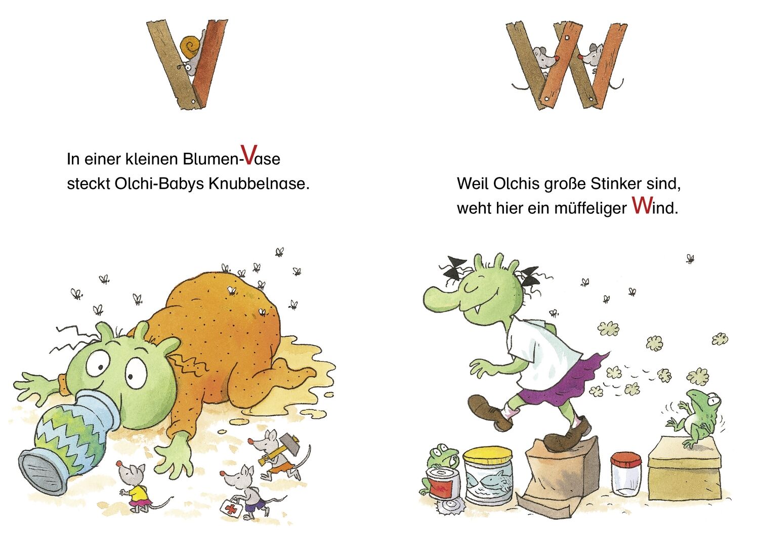 Für die Olchis beginnt der Schulanfang. A wie Abfall, B wie baden? Igitt, hier kommt das Olchi-ABC! Olchis lieben das A, weil es so schön nach Abfall riecht. Sie schütteln sich beim B, weil baden für die Olchis Folter ist. Das C für Computer ist schon wieder ...