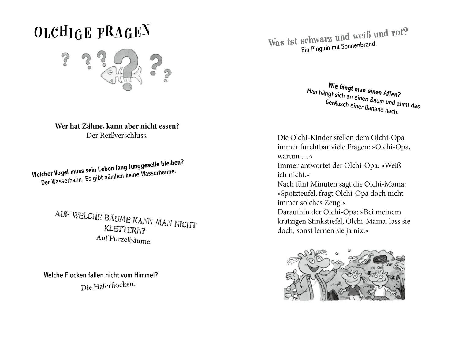 Spotzteufel! Die Olchis und ihre Scherzfragen machen Schule zum krötigsten Vergnügen aller Zeiten. Wie heißt ein Reh mit Vornamen? Na klar, Kartoffelpü. Und wie nennt ein Kannibale einen Skater? Ganz einfach: Rollbraten. Wenn die Olchis ihre schleimigsten Sch...
