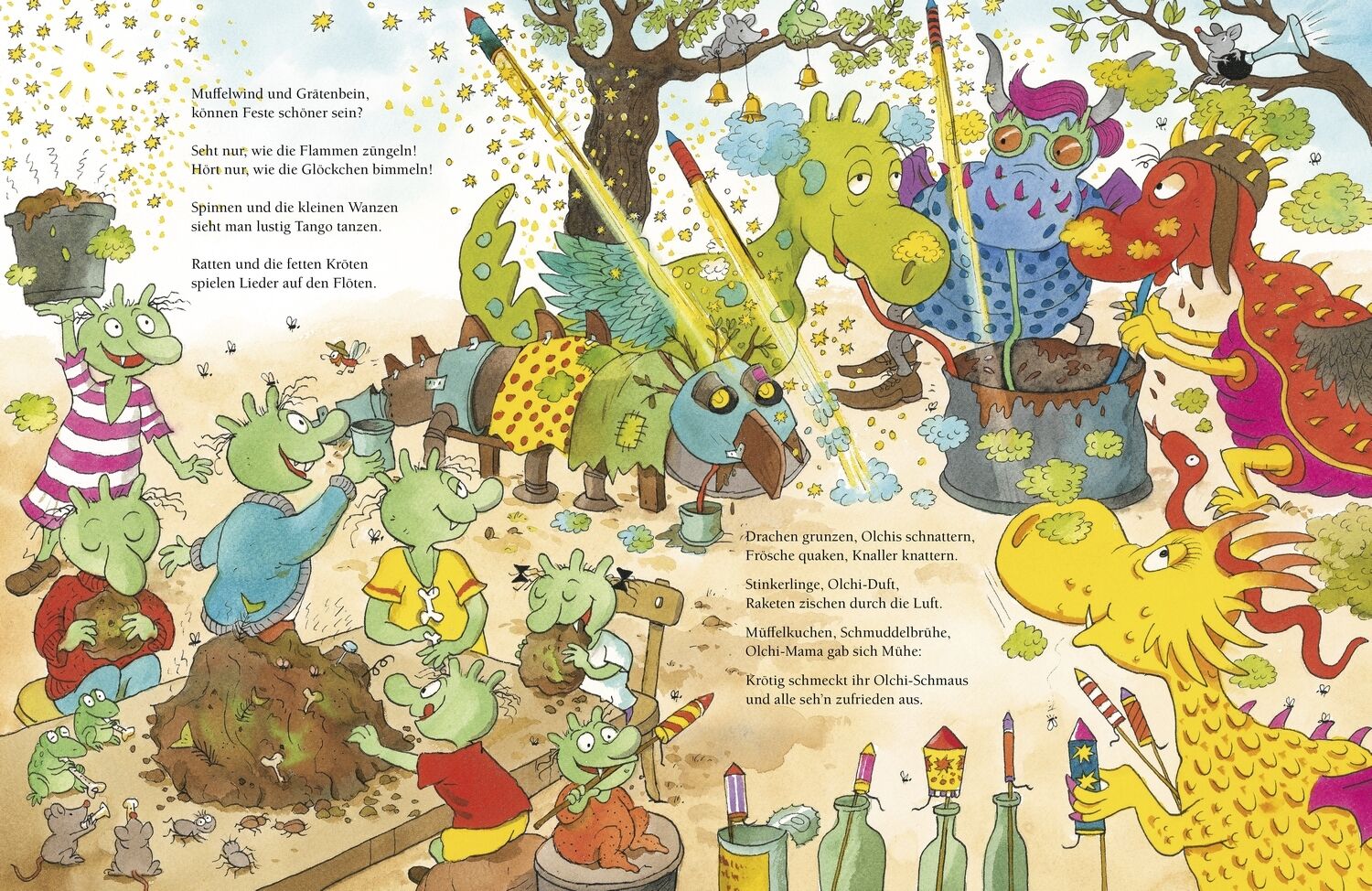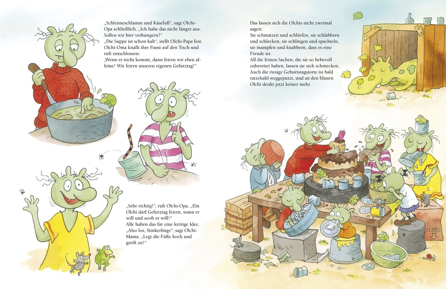 Krötiger Bilderbuchspaß mit den Olchis Eine Babysitterin auf dem Müllberg? Das kann ja heiter werden! Genauso heiter wird auch das Fest für Drache Feuerstuhl und die Geburtstagsparty für den pingeligen blauen Olchi, den planen die Olchis diesmal nämlich ganz ...
