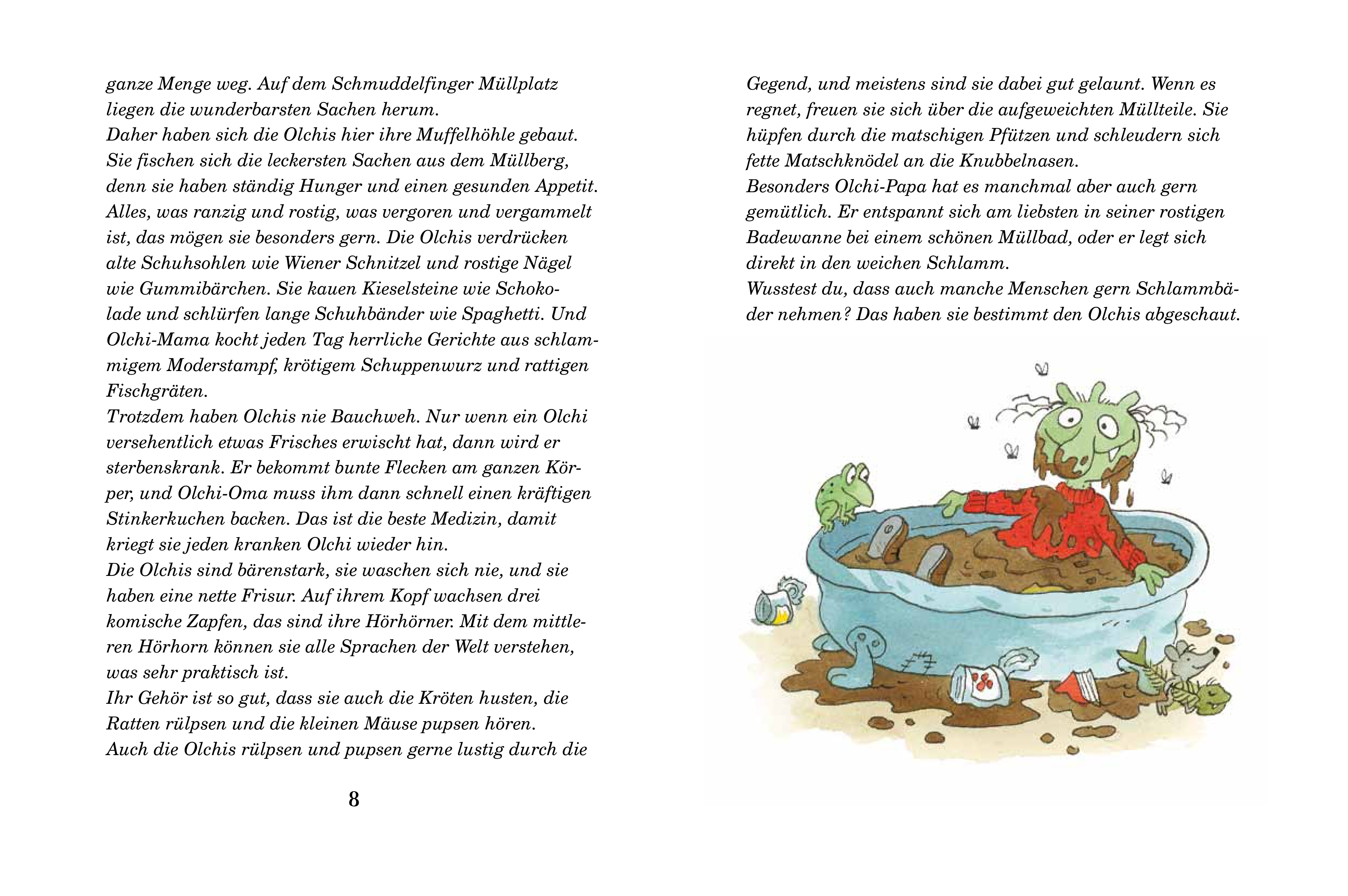In "Die Olchis und die Teufelshöhle" von Erhard Dietl begleiten die Olchis und ihre neue Freundin Vicky die Leser auf ein spannendes Abenteuer unter dem Schloss Schmuddelfing. Gemeinsam entdecken sie ein mysteriöses Höhlenlabyrinth, das viele Geheimnisse birg...