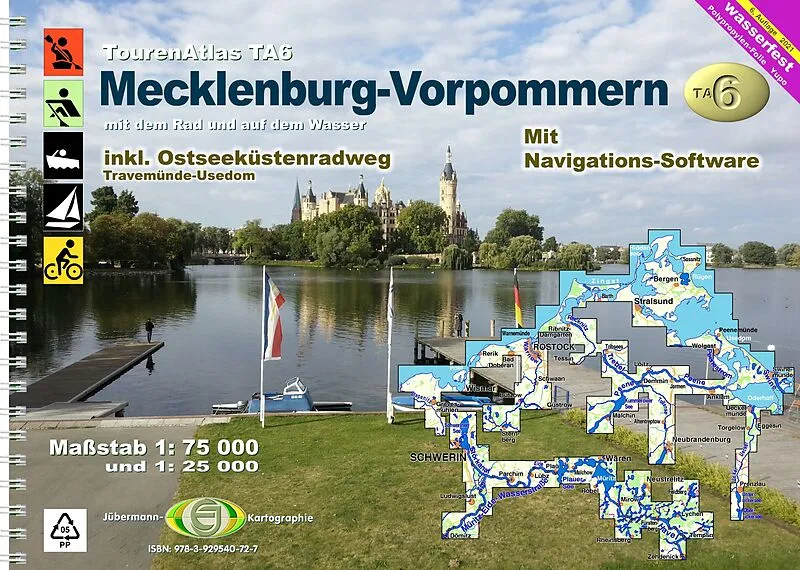 Die 66 Streifenkarten Mecklenburg-Vorpommerns (einschl. Randbereiche anderer Bundesländer) bieten alle Informationen, die der Wasserwanderer unterwegs benötigt: Gewässer-km, Anlande- u. Befahrungsverbote, Rast- und Biwakplätze, Liegeplätze, Ein- und Ausstiegsm...